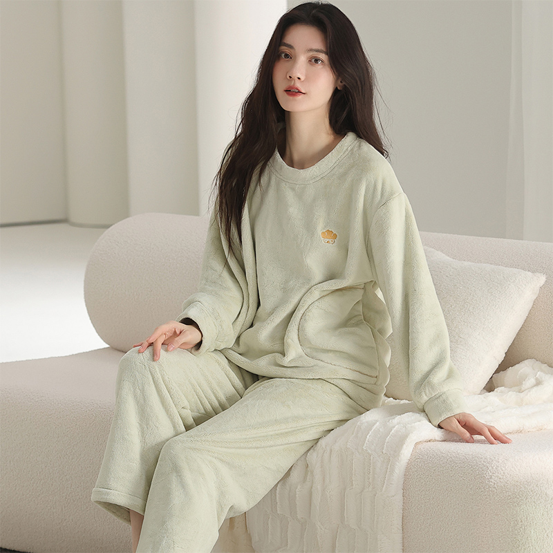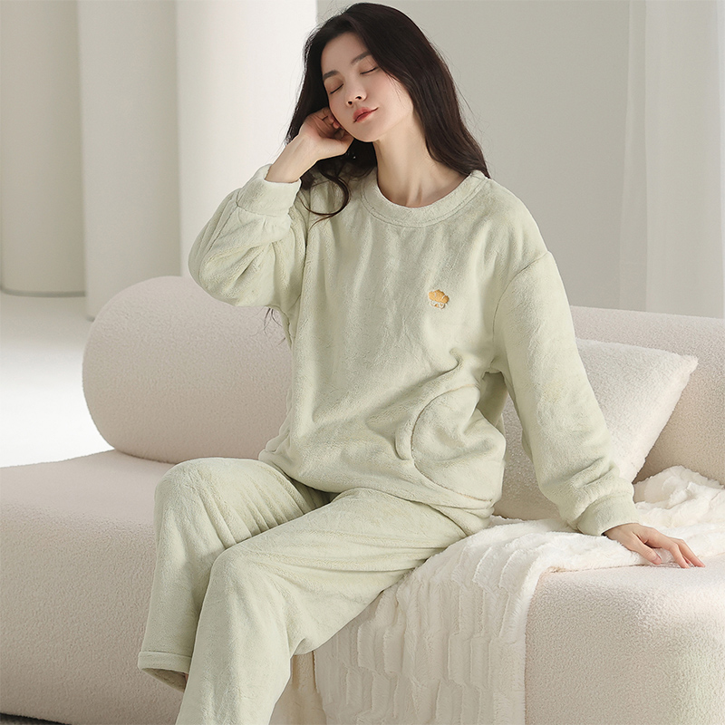 红豆珊瑚绒睡衣女羊羔绒抗静电加厚桂花绒甜美保暖外穿家居服套装