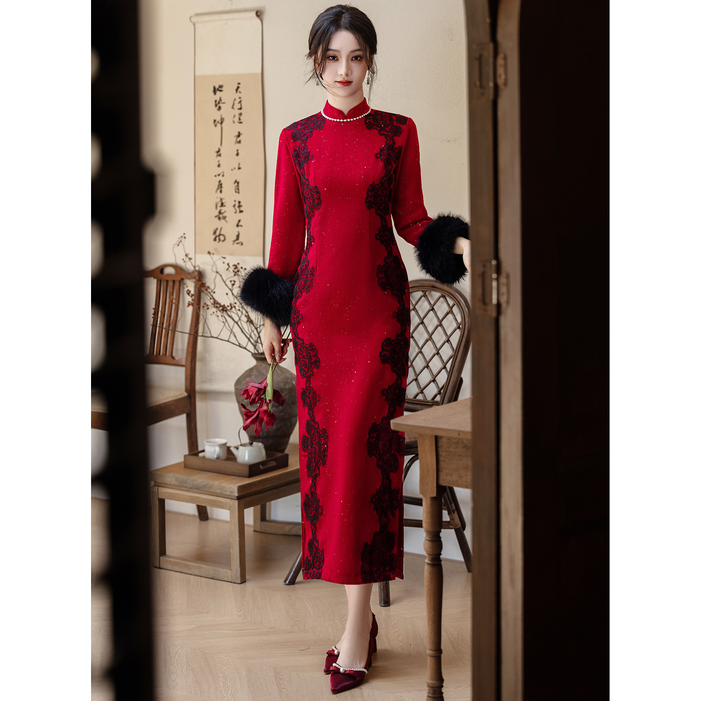 国风订婚敬酒礼服裙子 新中式 红色改良旗袍连衣裙女2025年秋季 新款