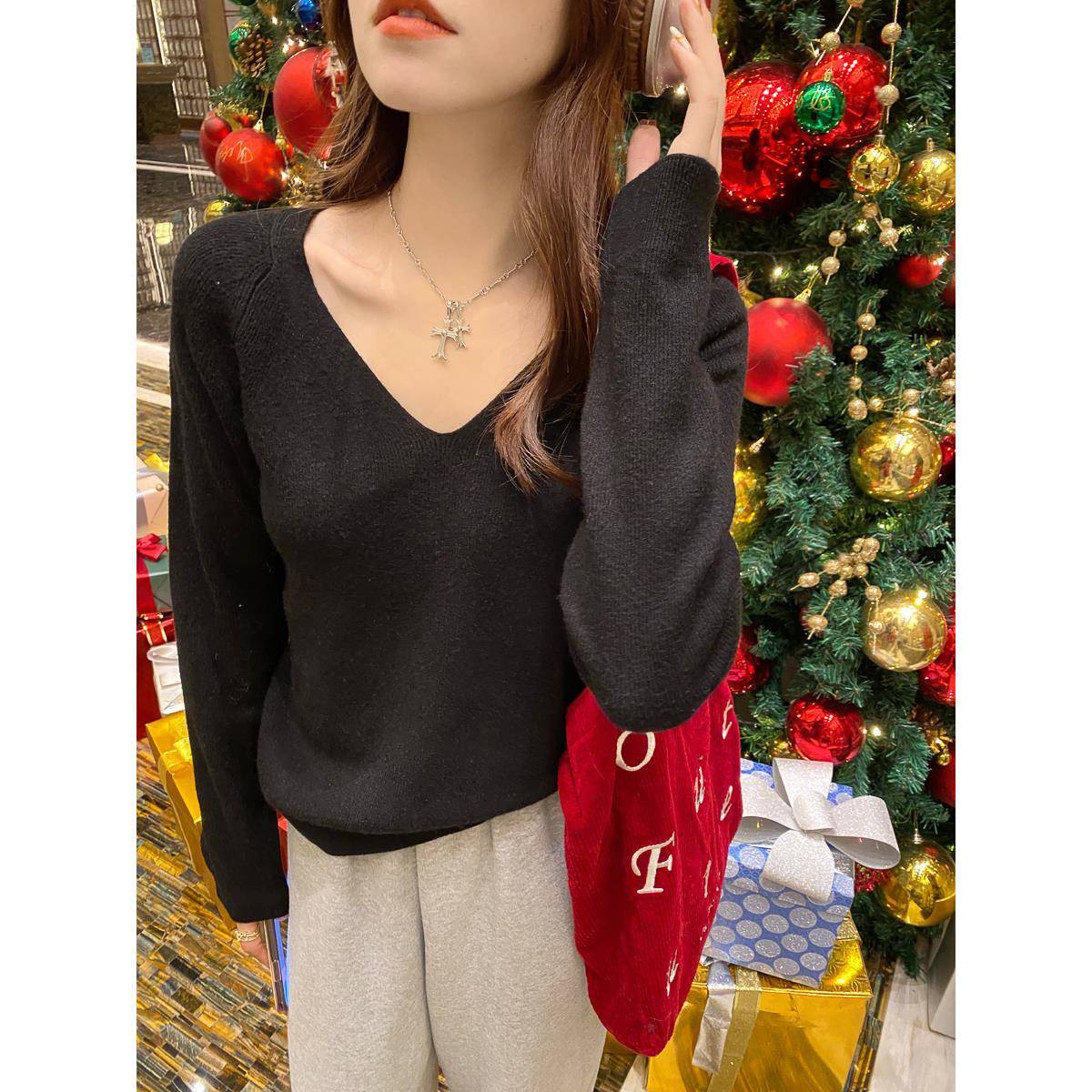 内搭上衣 高级感独特气质修身 韩系学院风v领针织衫 毛衣女秋冬新款