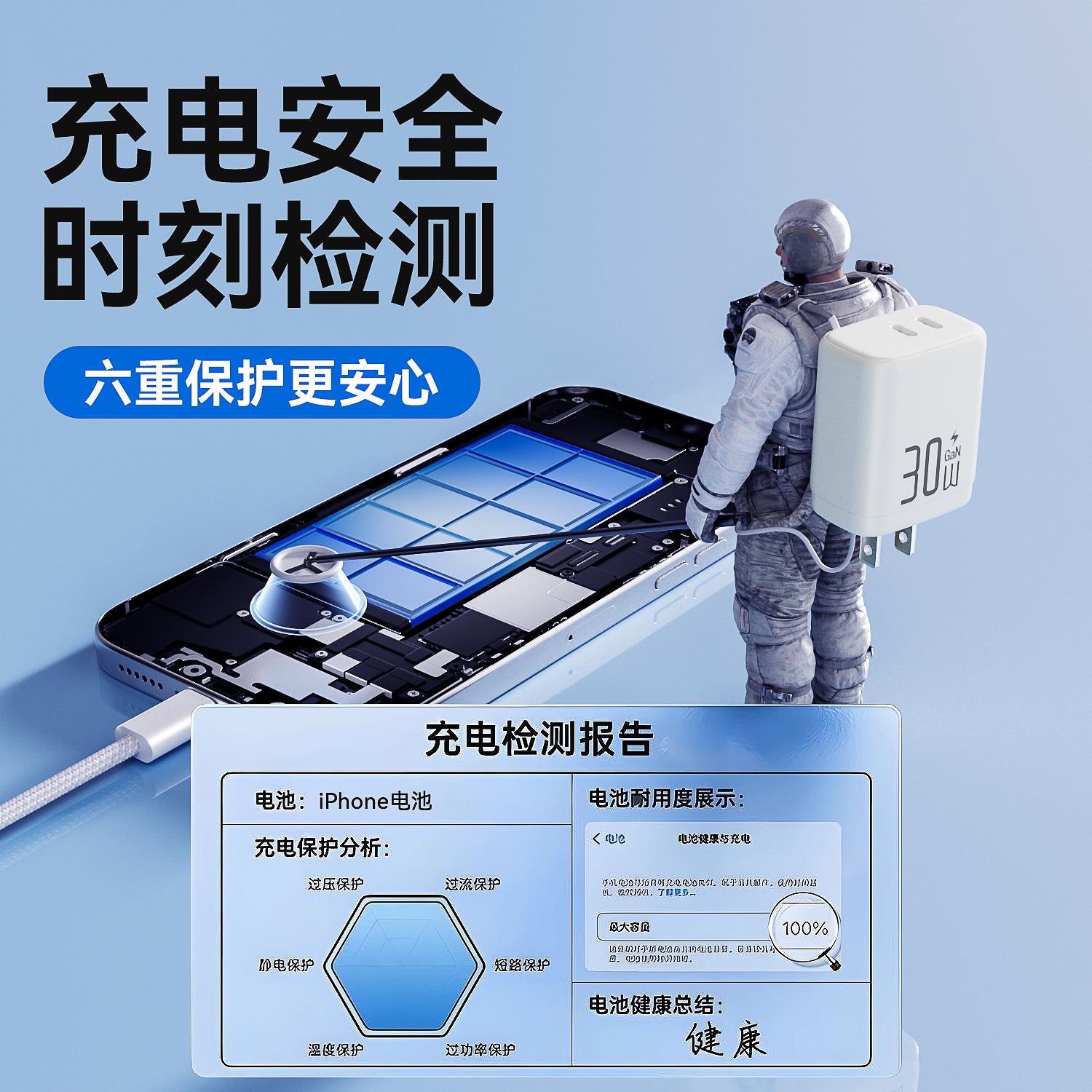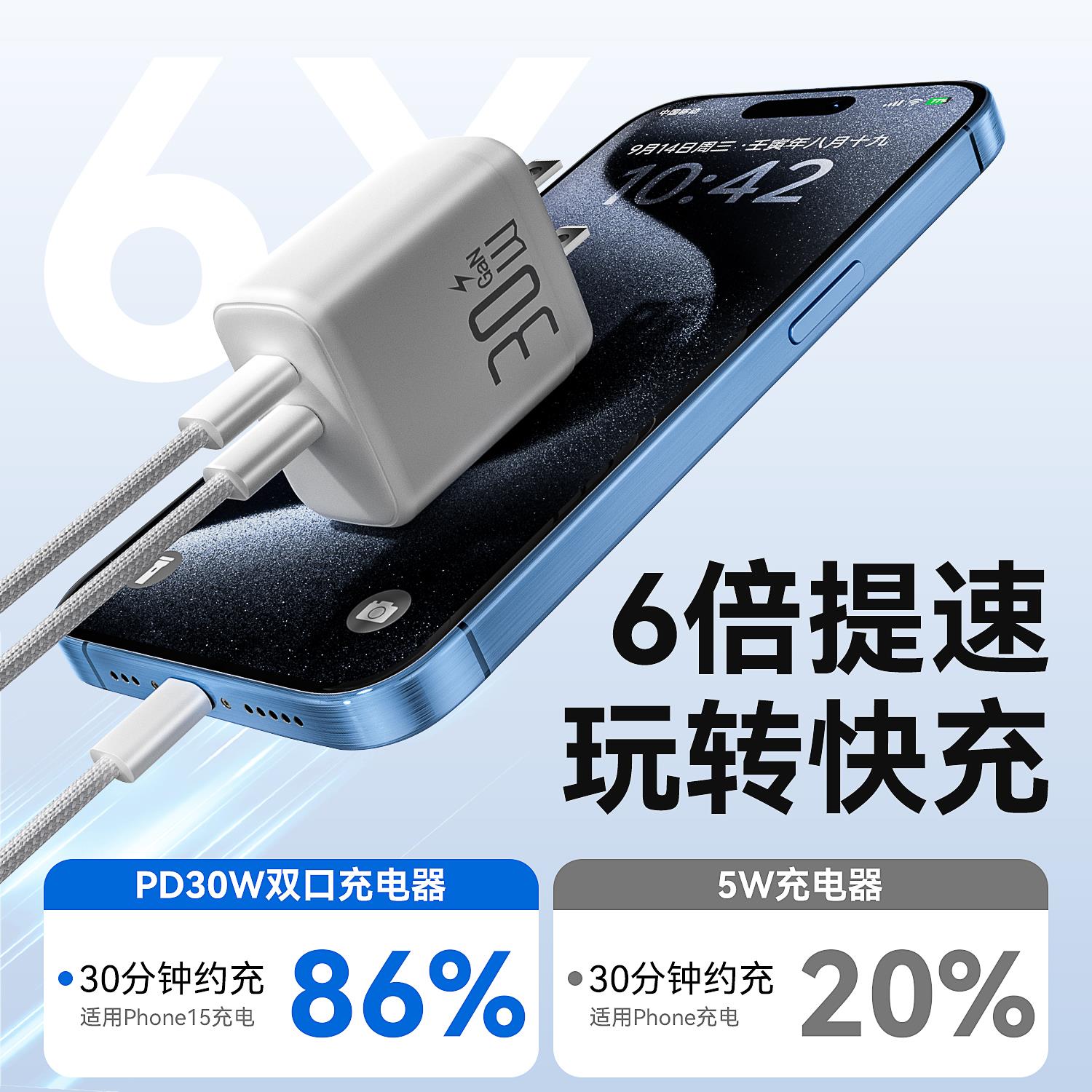 c充电器30W双口充电头适用苹果16线14promax快充头131215数据线套装 适用于iphone手机type pd快 天猫正品