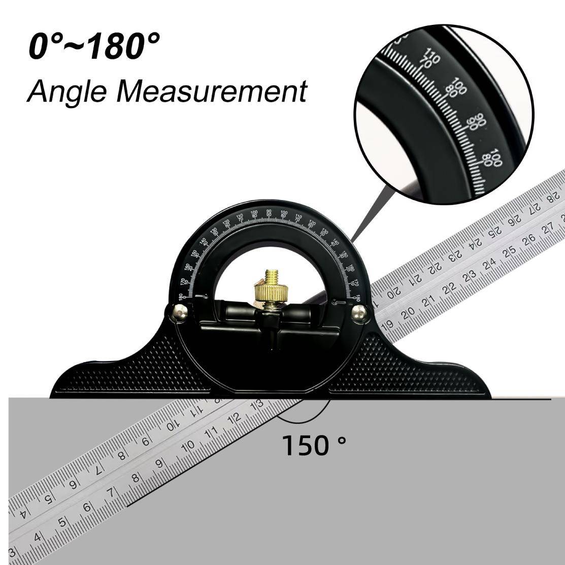 测量组合角度尺300mm不锈钢180度功能木工角尺带水平仪木工工具