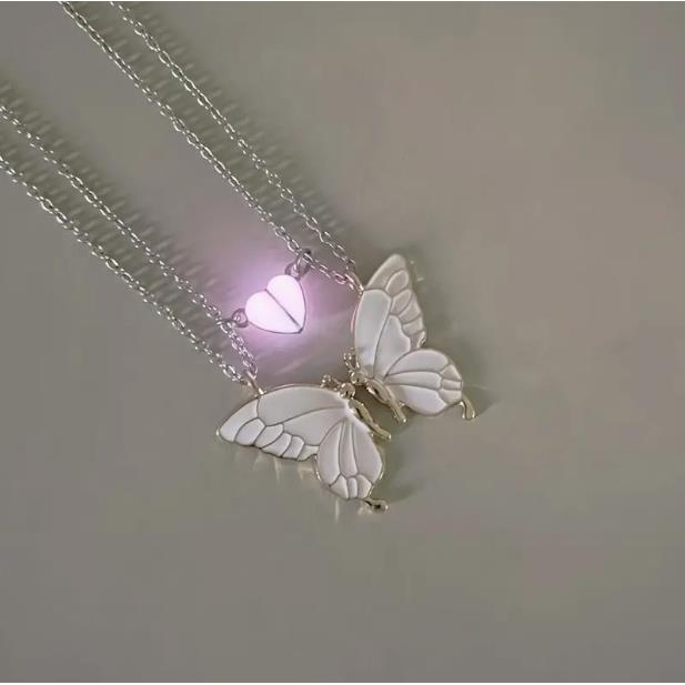 闺蜜项链磁吸式 吊坠可发光心形蝴蝶仙气锁骨链学生一人一半 二人款