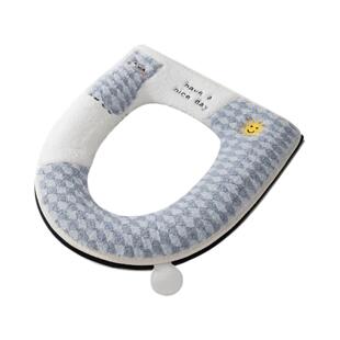 PU坐便套坐便垫套 通用马桶圈拉链款 拉链款 马桶垫格子熊猫家用四季
