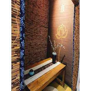 芦苇帘子草帘子复古包边茶室农家乐隔断吊顶墙面装 饰竹门帘窗卷帘