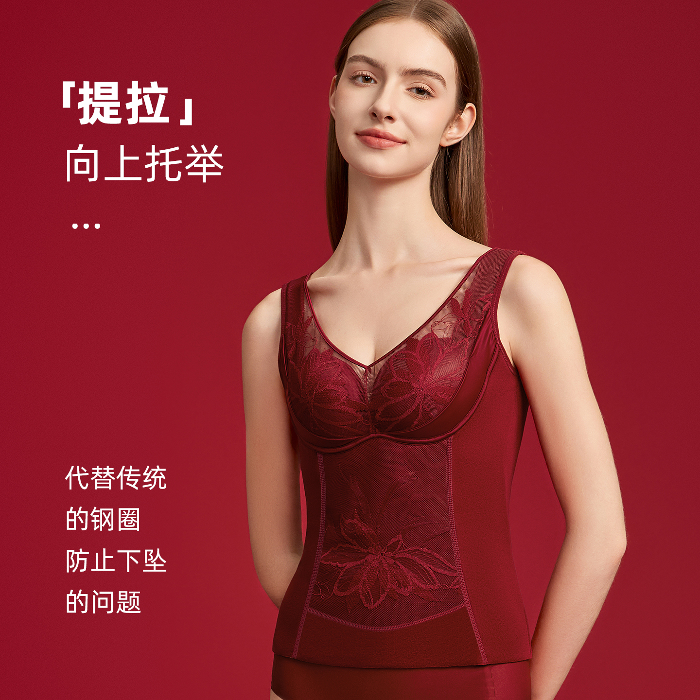 猫人保暖背心女带胸垫2025新款 羊绒蚕丝貂绒免穿文胸内衣女 冬季