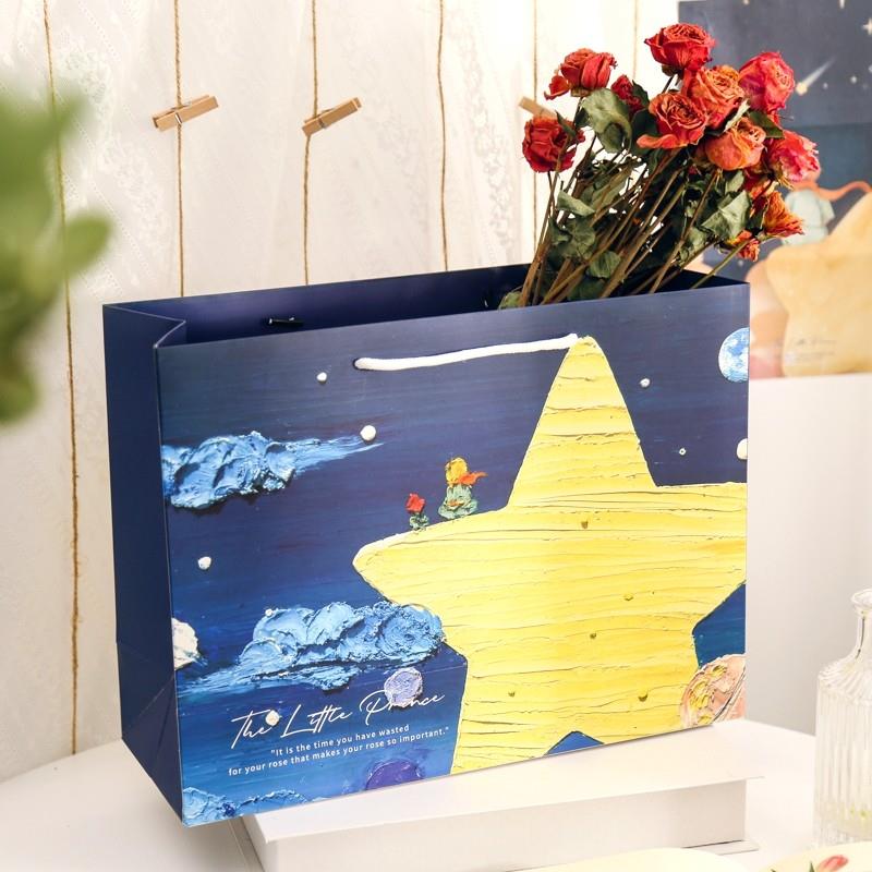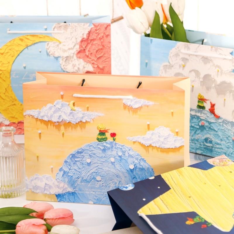 奶油小王子油画棒礼品袋生日礼物袋花束手提袋纸袋风妇女节包装 袋