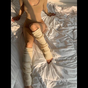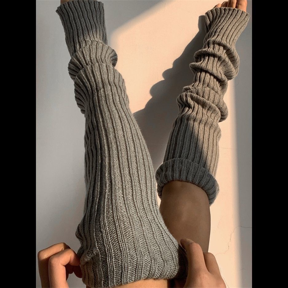 灰色过膝堆堆袜套女秋冬加长护膝保暖腿套针织长筒袜小腿袜瑜伽