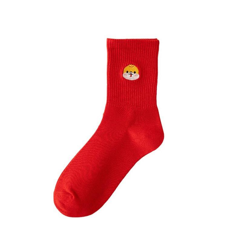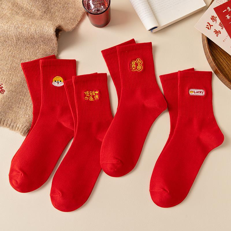本命年红色袜子男女秋冬款 蛇年中筒袜纯棉情侣结婚新年送礼礼盒装