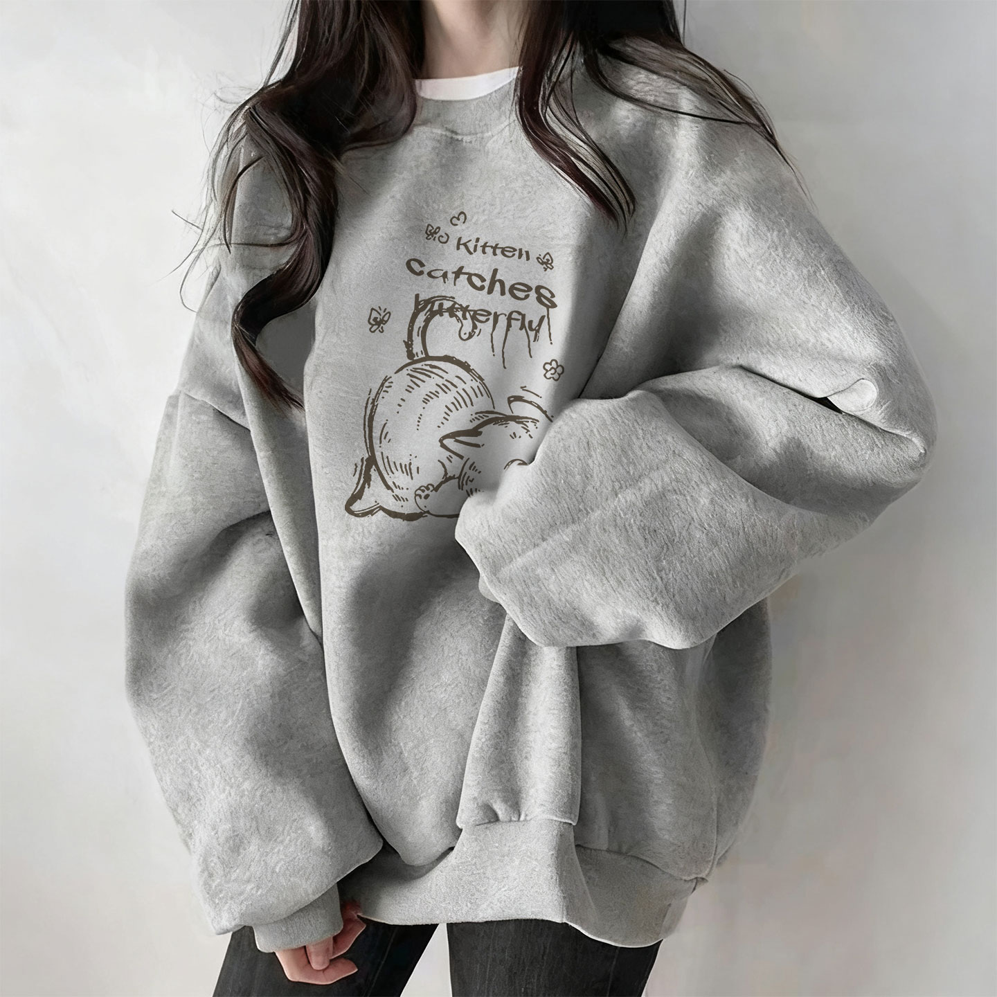 小个子冬季 爆款 加绒加厚上衣 早秋灰色女士卫衣2025年新款 巨好看