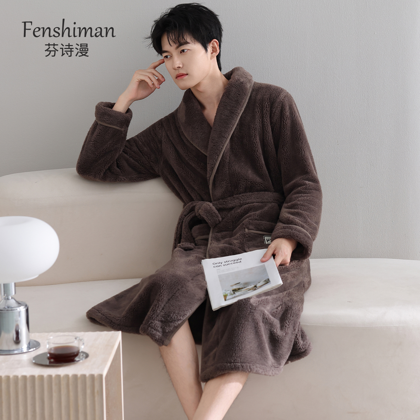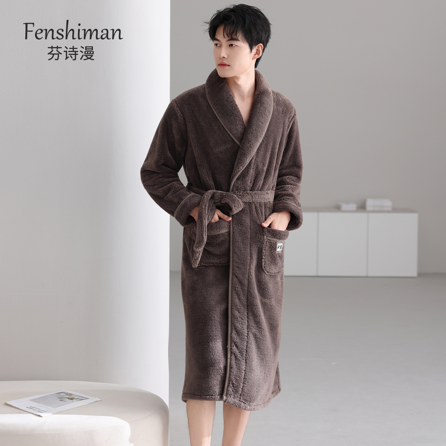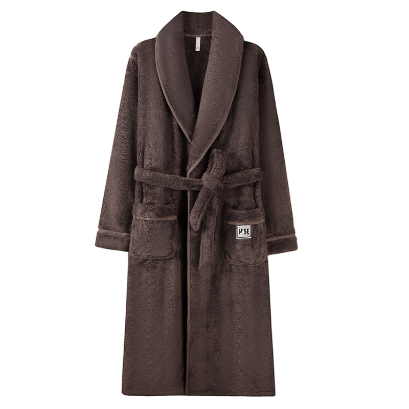 法兰绒长款 珊瑚绒加厚加绒保暖秋冬款 浴袍家居服 睡衣冬季 睡袍男士