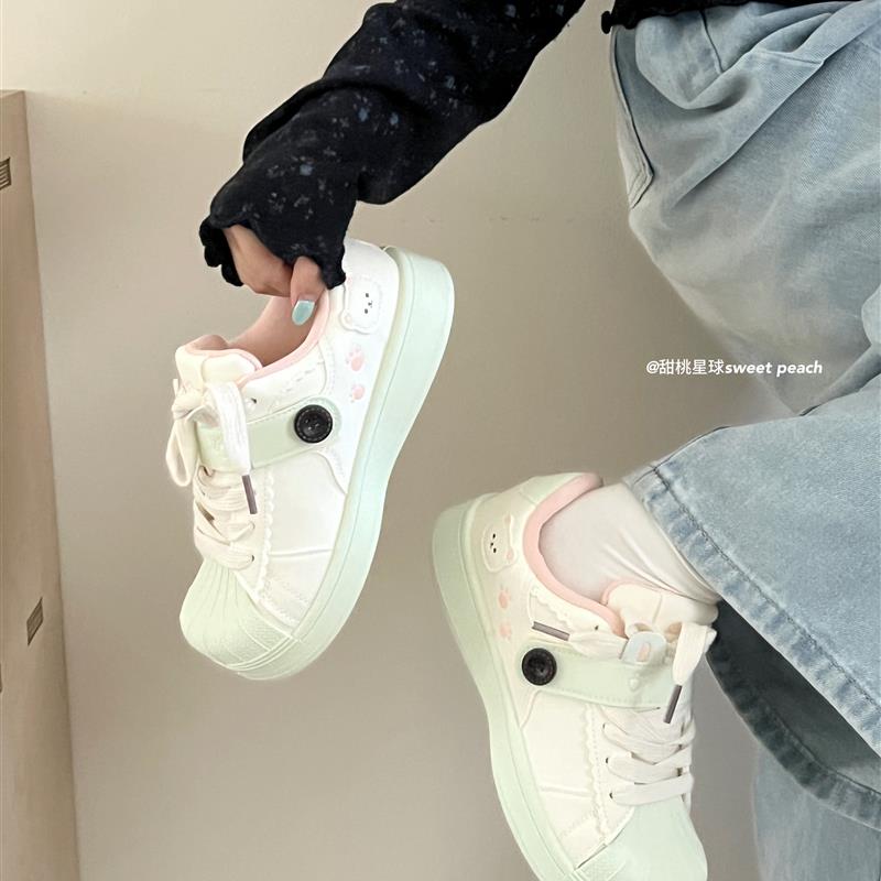 女款 小白鞋 2025新款 运动休闲百搭韩版 秋季 现货贝壳头小熊板鞋