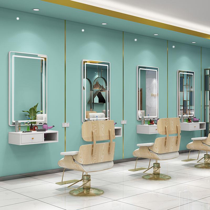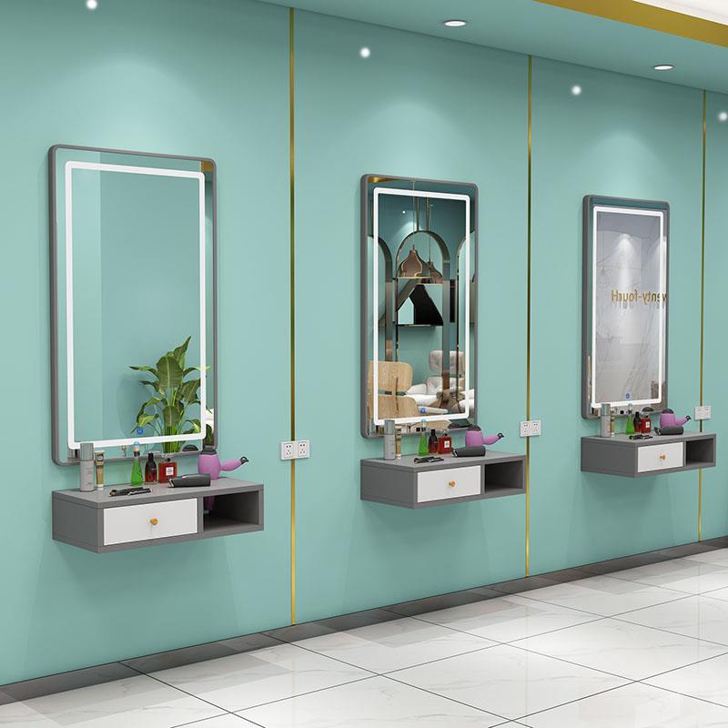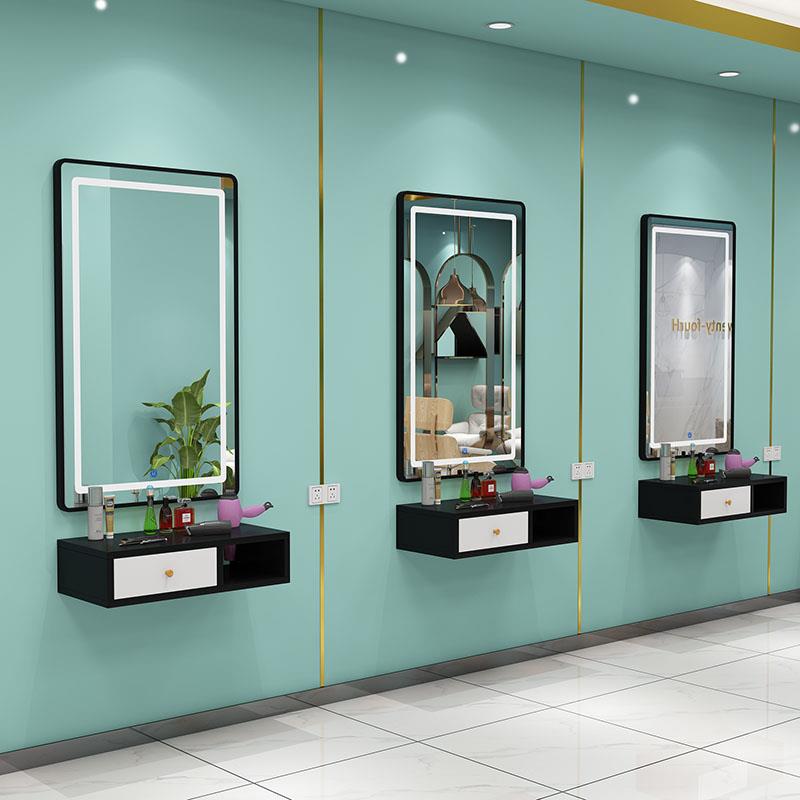 网红理发店镜台美发店镜子发廊专用带灯挂墙潮款 烫染剪发镜 壁挂式