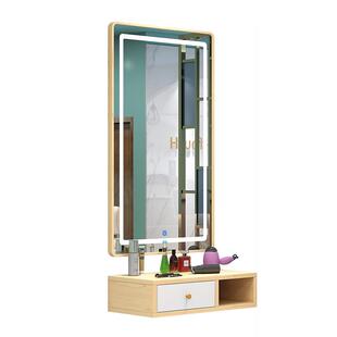 网红潮款 理发店专用烫染镜台发廊专用简约带灯壁挂单面美发镜台镜