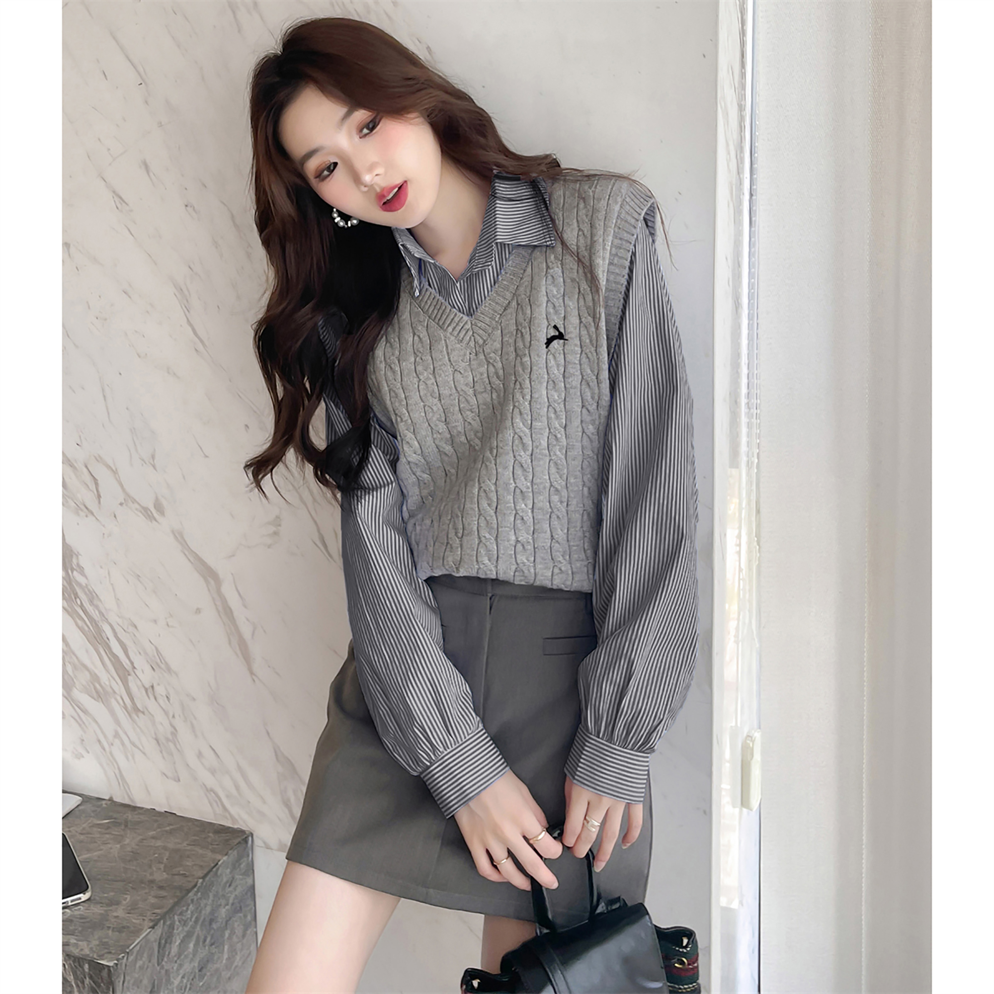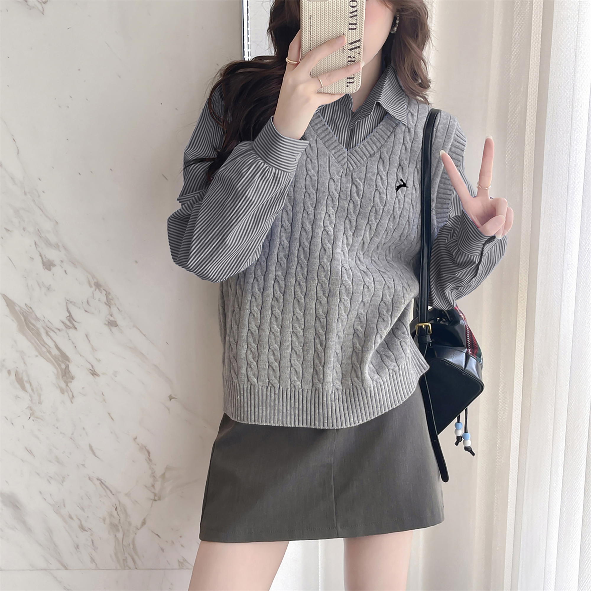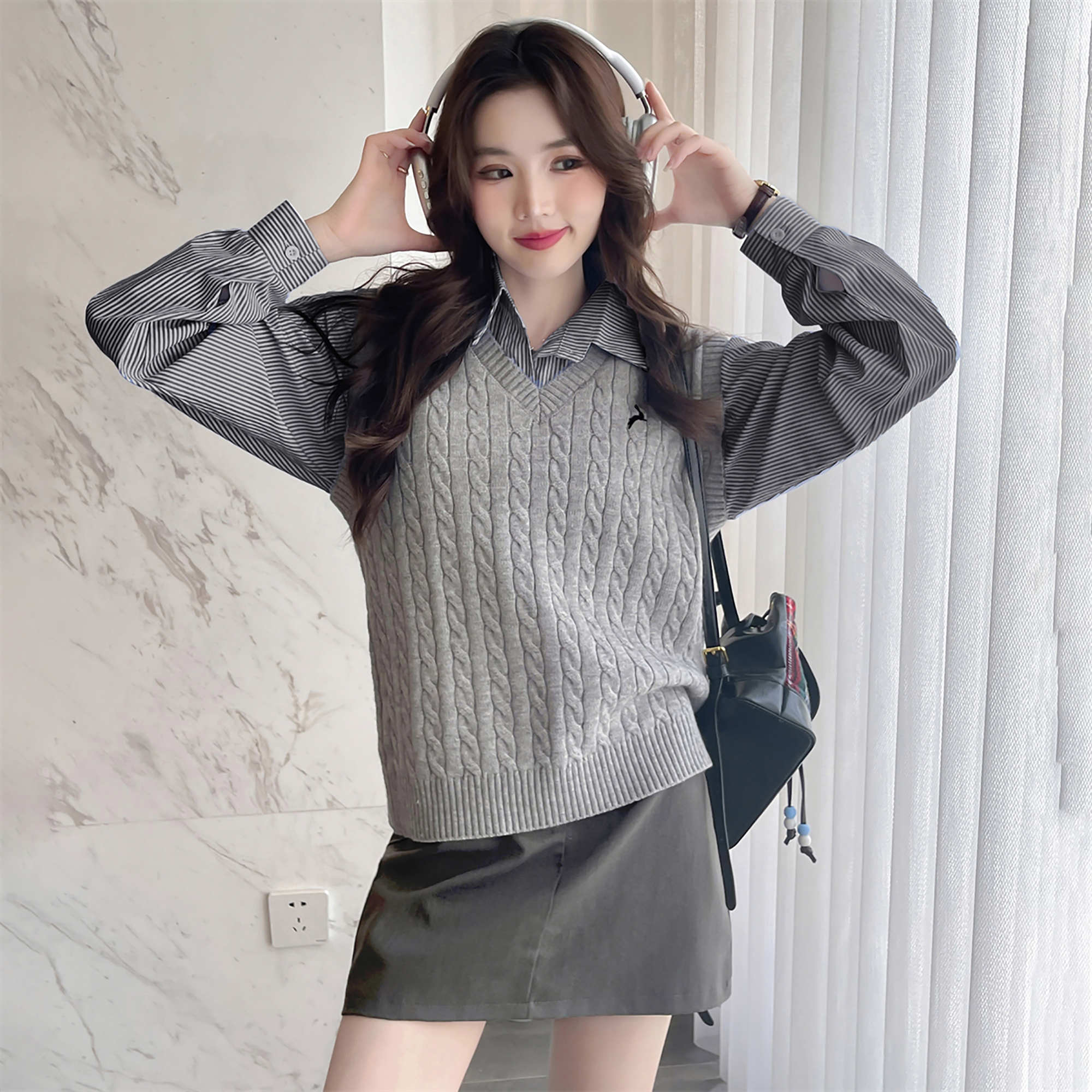 内搭上衣 高级感独特气质修身 韩系学院风v领针织衫 毛衣女秋冬新款