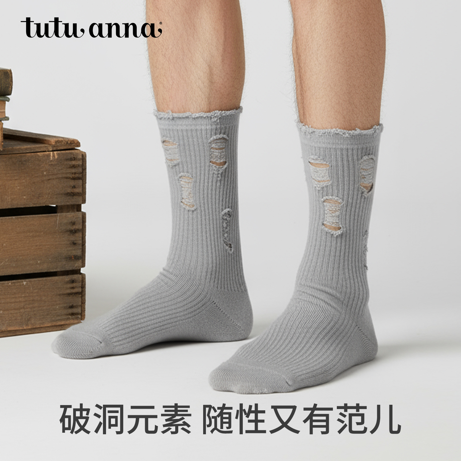 tutuanna春秋男士 纯色网眼条纹棉质透气舒适百搭男士 短袜