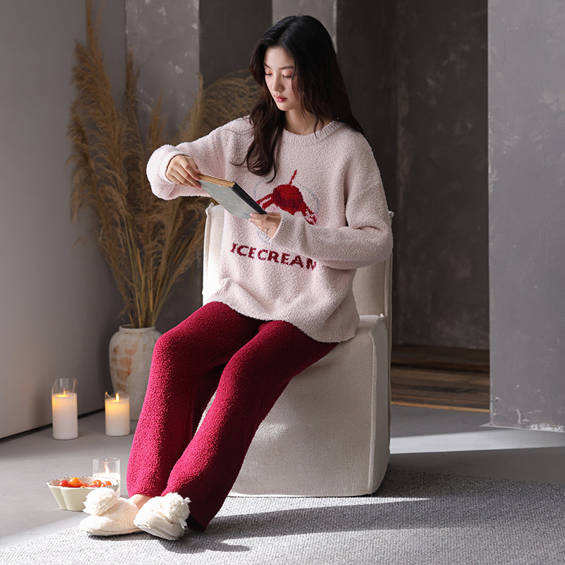 家居服两件套 保暖网红风冬季 斯服玛半边绒睡衣女2025新款 秋冬长袖