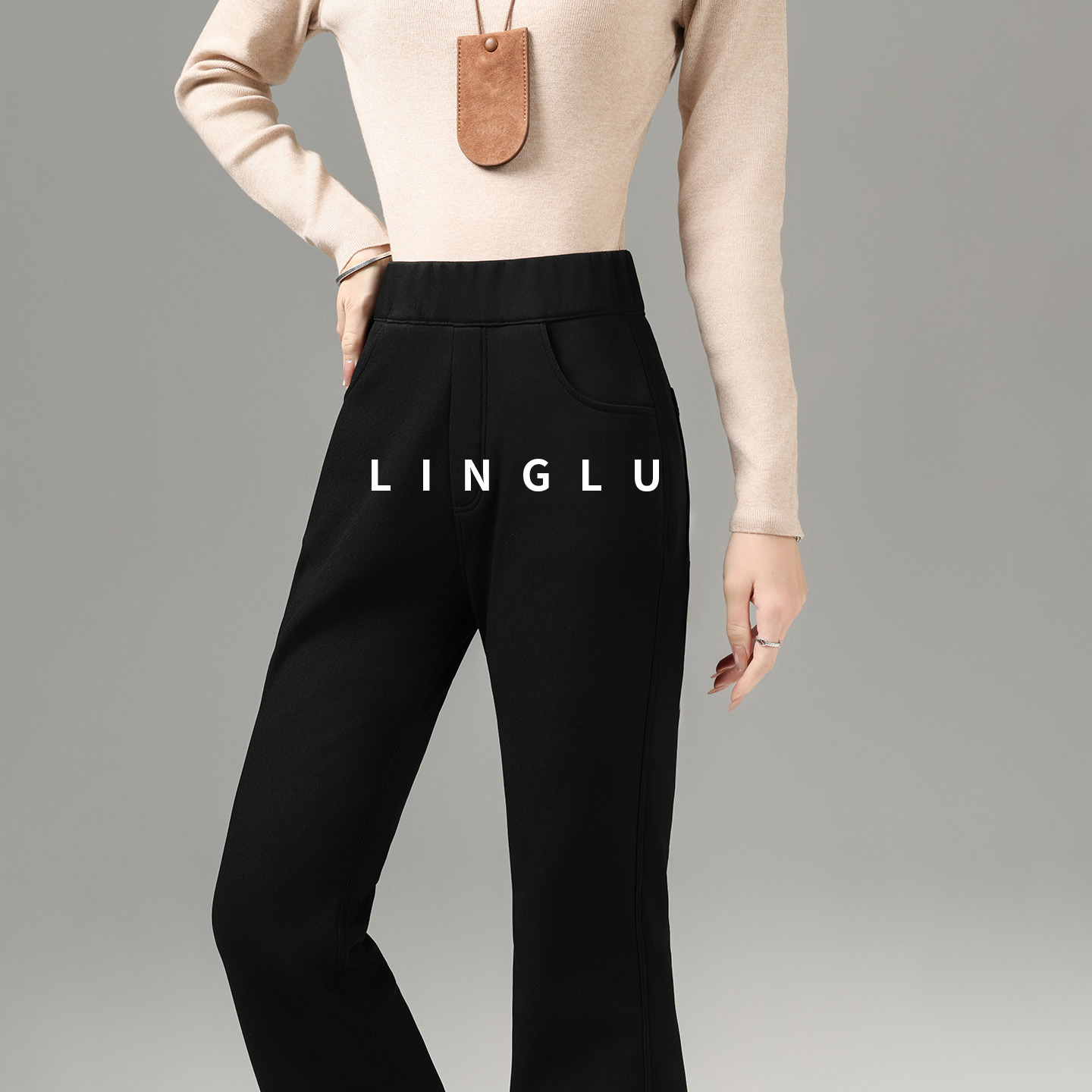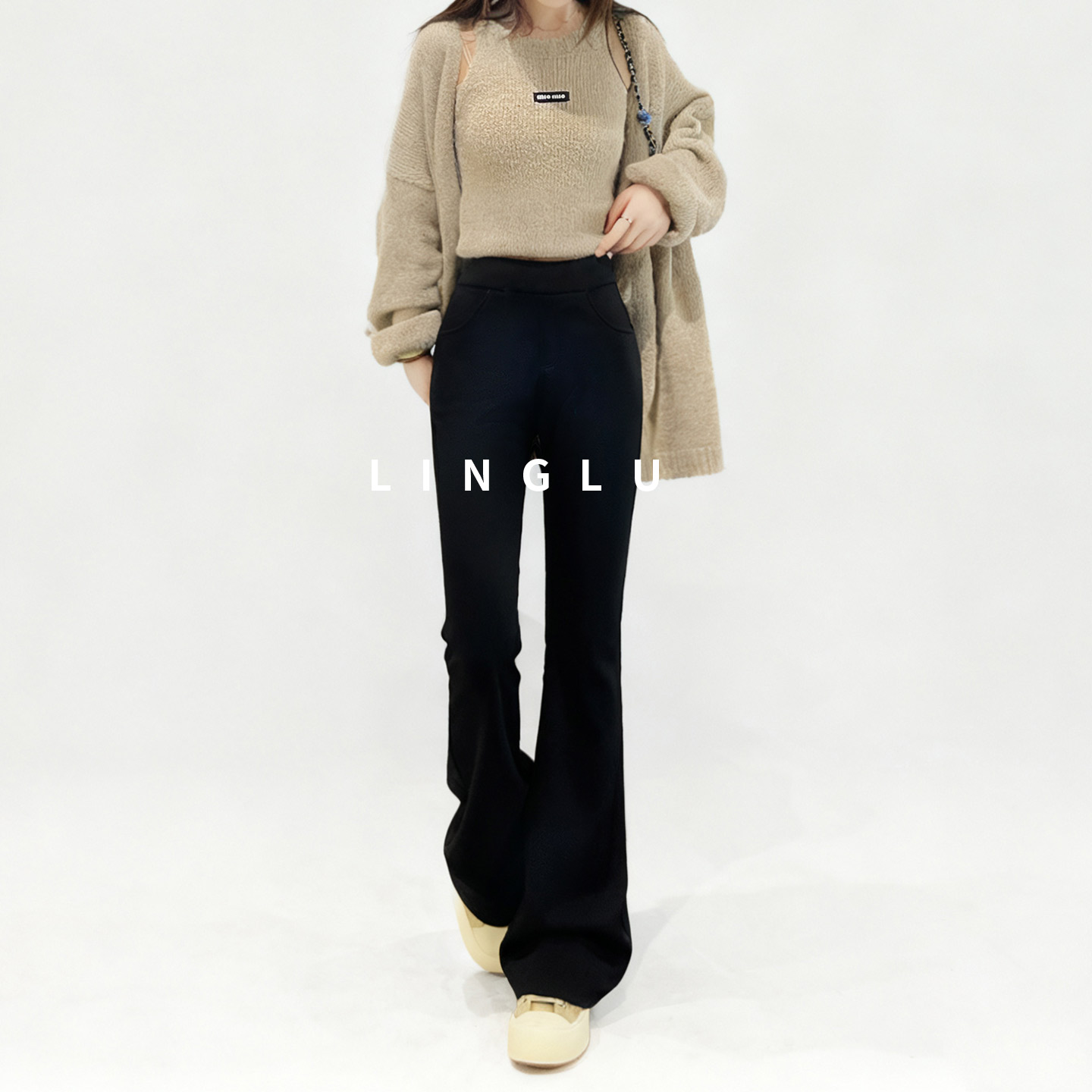 女秋冬显瘦修身 黑色微喇裤 马蹄裤 加厚小黑裤 冬 喇叭长裤 竹竿腿