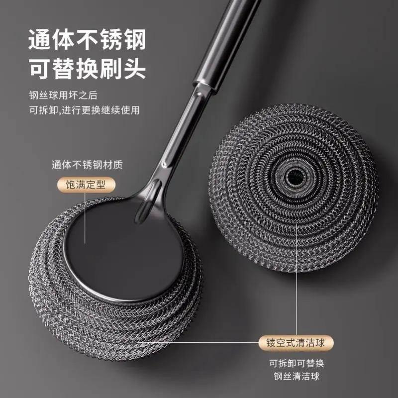 德国加长不锈钢刷锅神器厨房专用洗锅碗清洁刷长柄万能钢丝球刷子