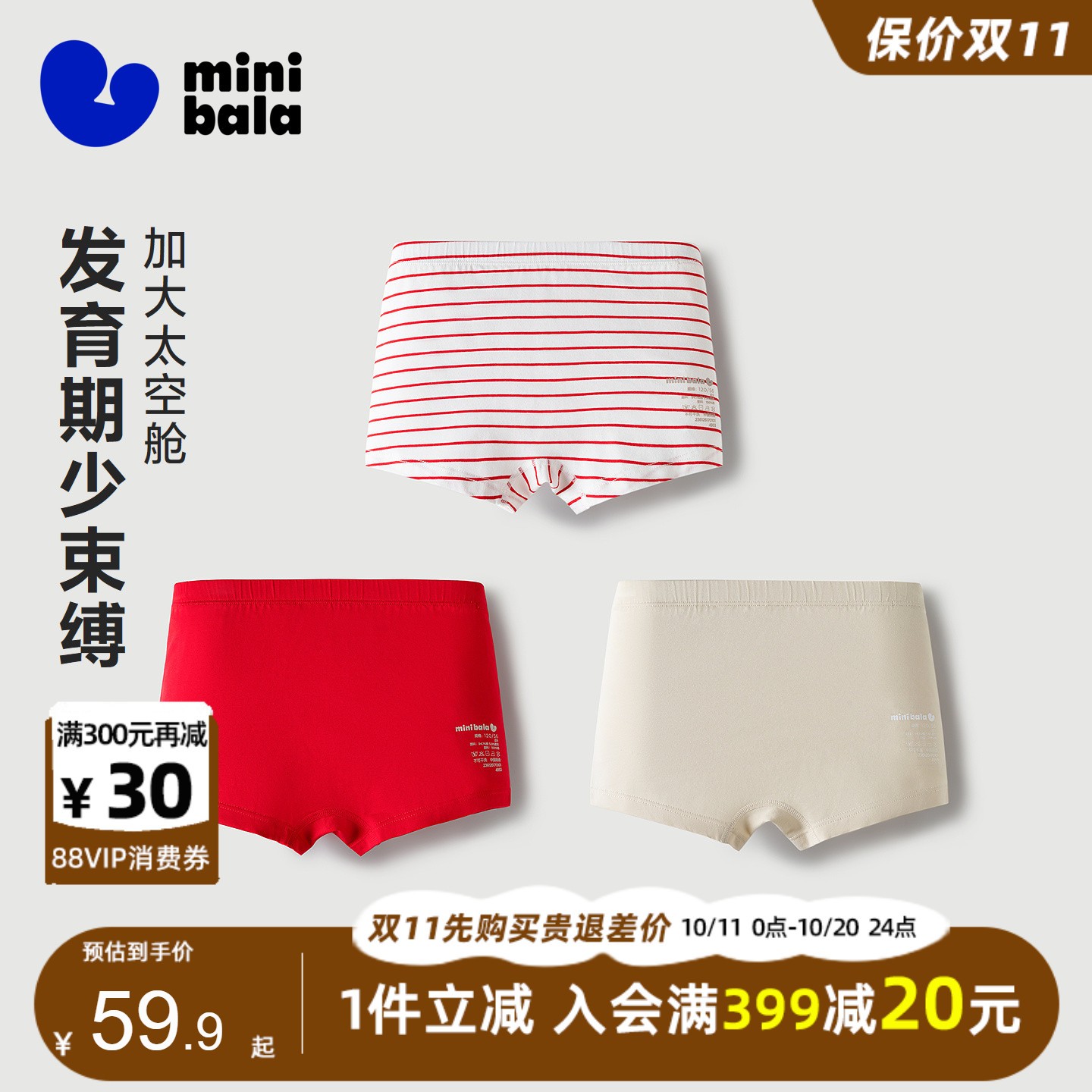 新款 3件 纯棉透气裆青少年四角短裤 平角内裤 男生 蕉内银皮311S男士