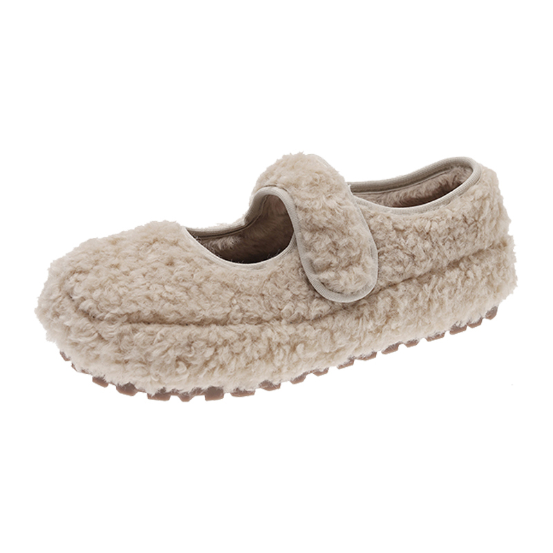 秋冬季 女毛毛鞋 外穿新款 保暖加绒玛丽珍单鞋 子 法式 棉鞋 复古勃肯鞋