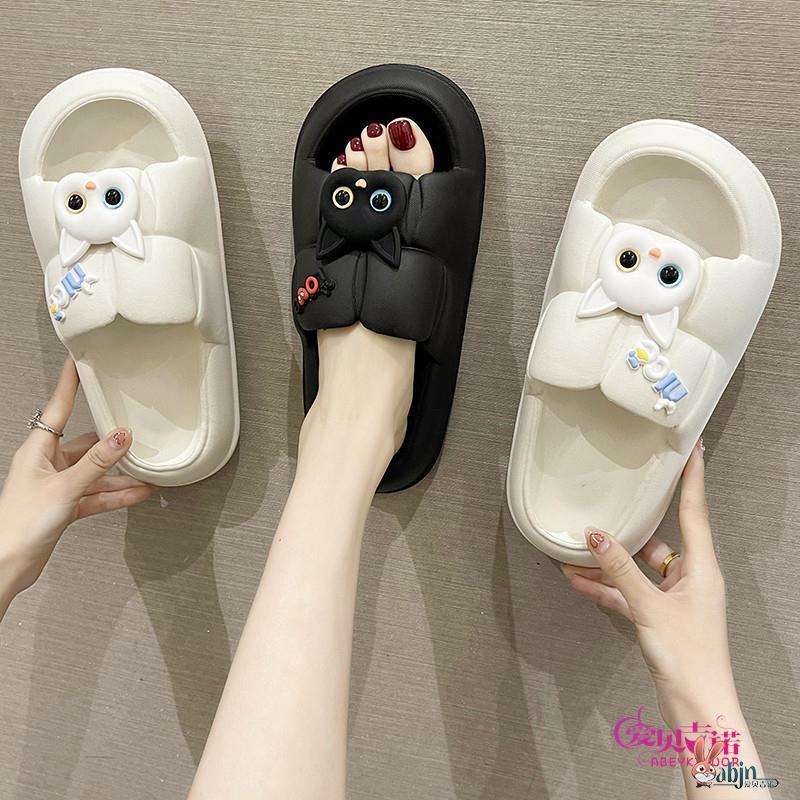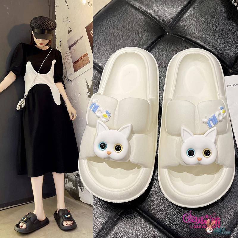 外穿可爱猫咪室内居家厚底防滑一字拖 ins潮时尚 软底凉拖鞋 女夏季
