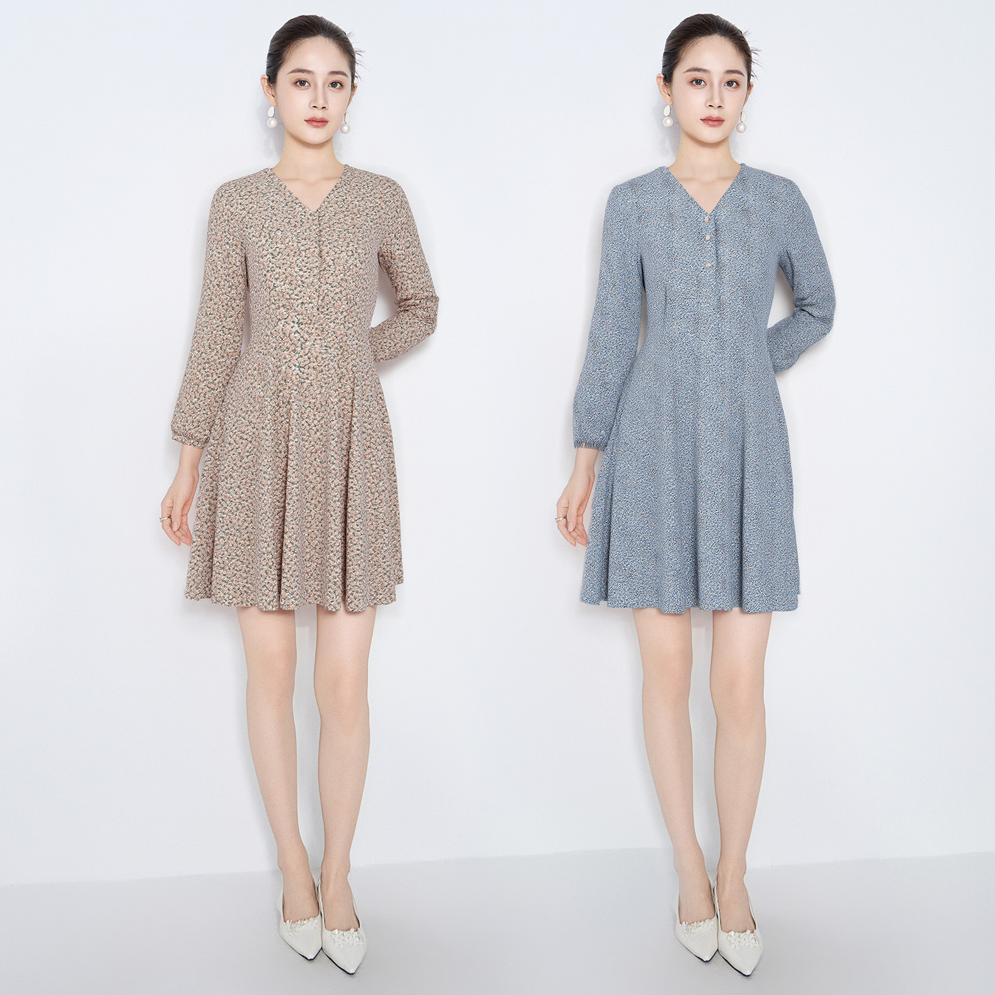 中长款 秋冬百褶裙2025春新款 A字裙长袖 气质修身 打底连衣裙 淑女装