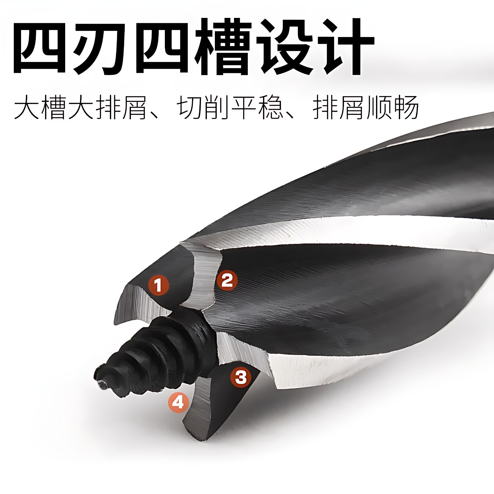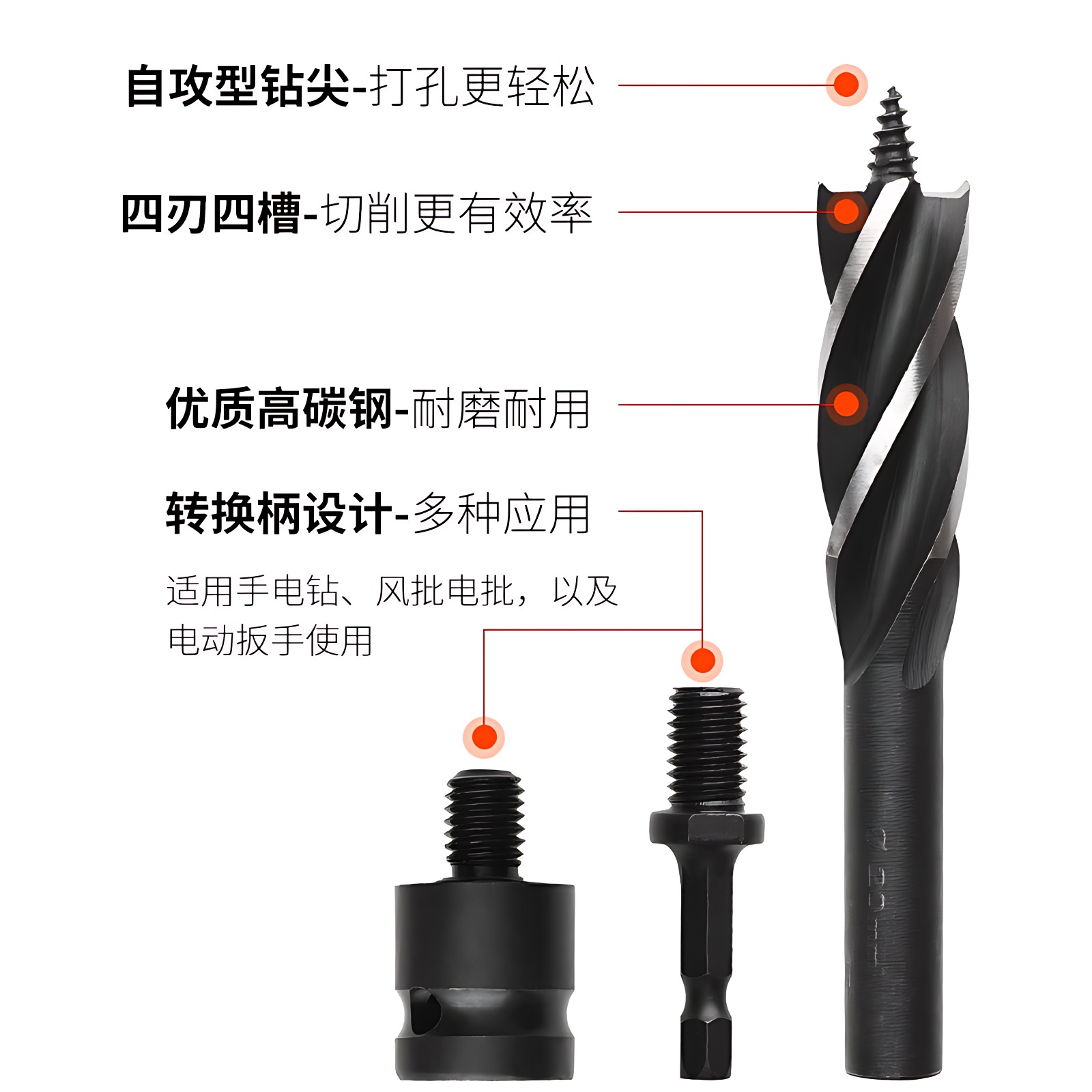 木工支罗钻四槽四刃木工钻头套装 门锁抽屉开孔扩孔钻开孔器六角柄