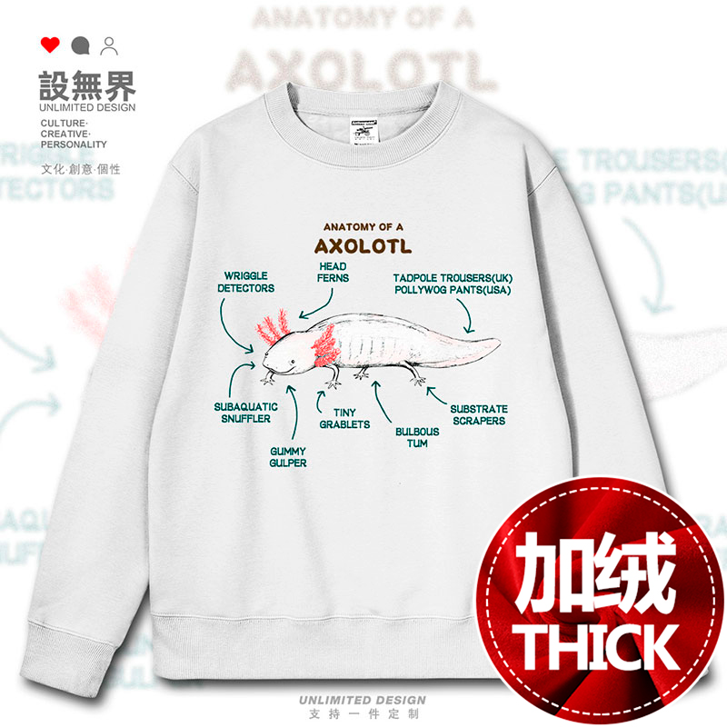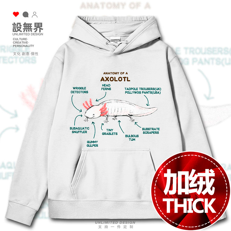 无界 潮设 动物分析图蝾螈可爱趣味连帽卫衣男女个性 创意印花帽衫