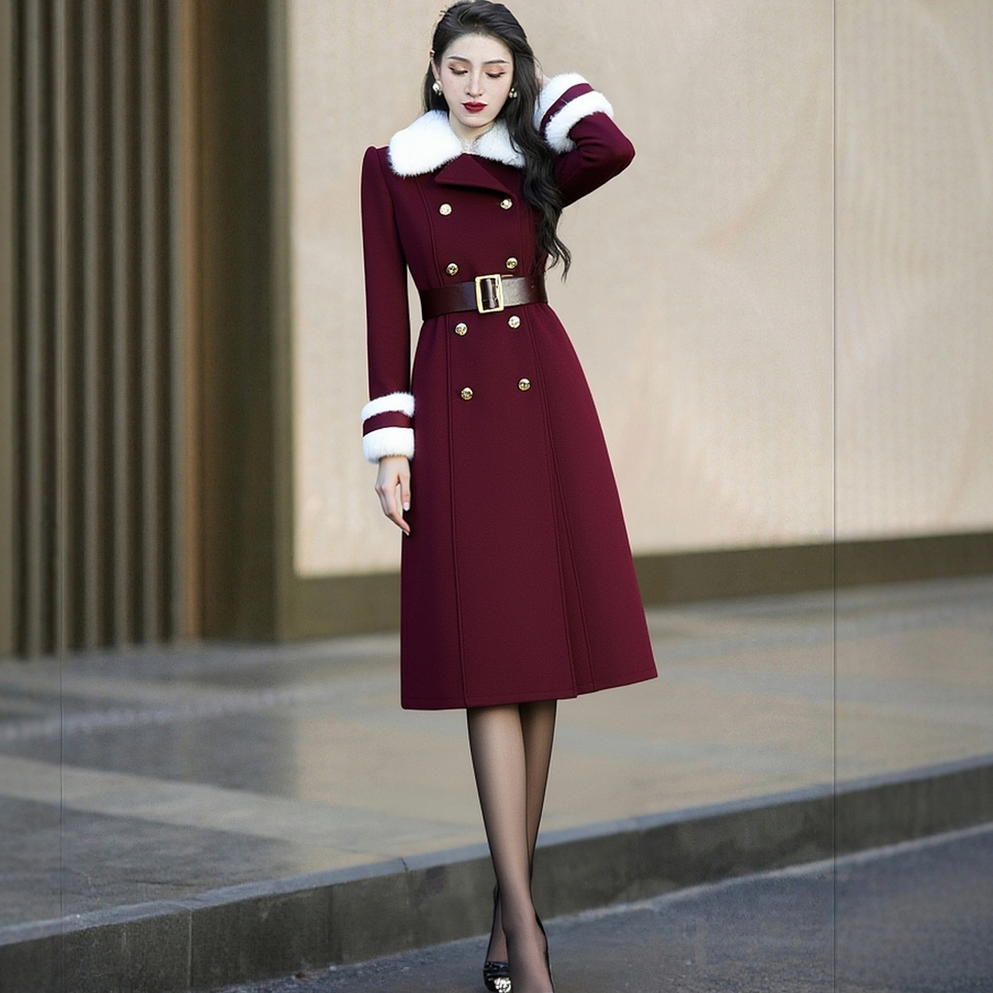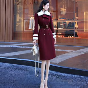 收腰修身 中长款 气质呢子大衣 新款 可脱卸毛领高级感毛呢外套女冬装