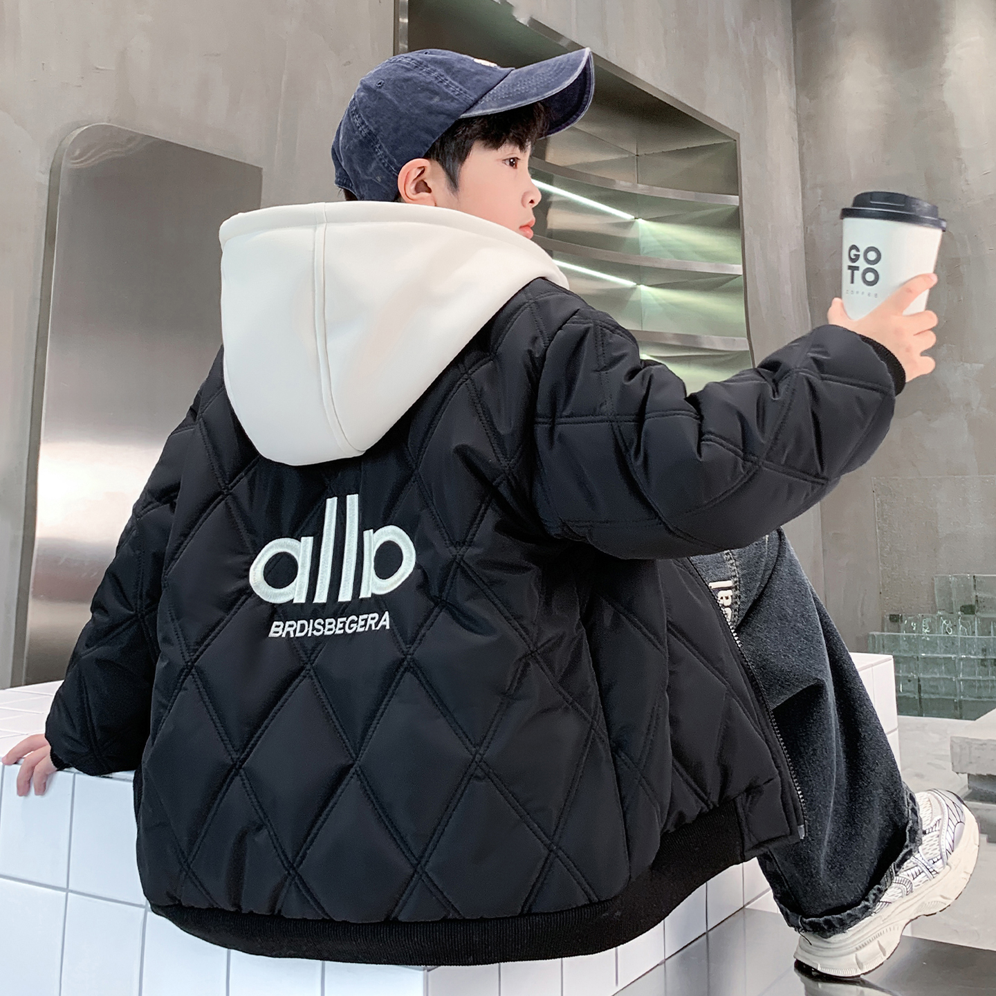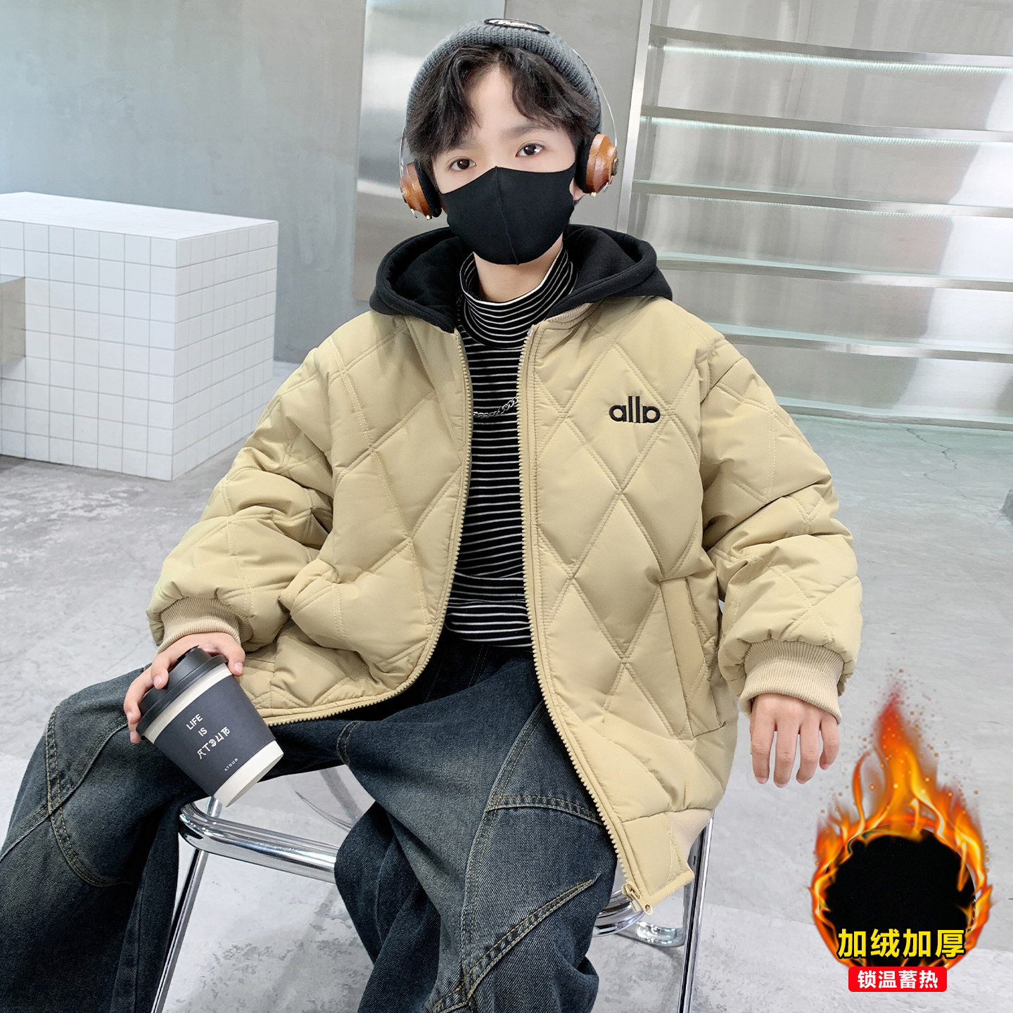 萱骁2025新款 上衣连帽洋气秋冬棉衣服加厚保暖普通 男童外套春秋款