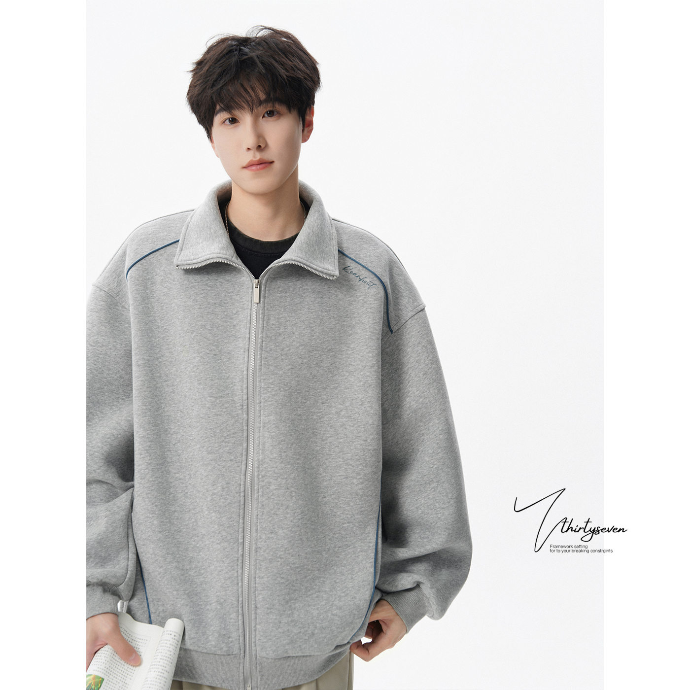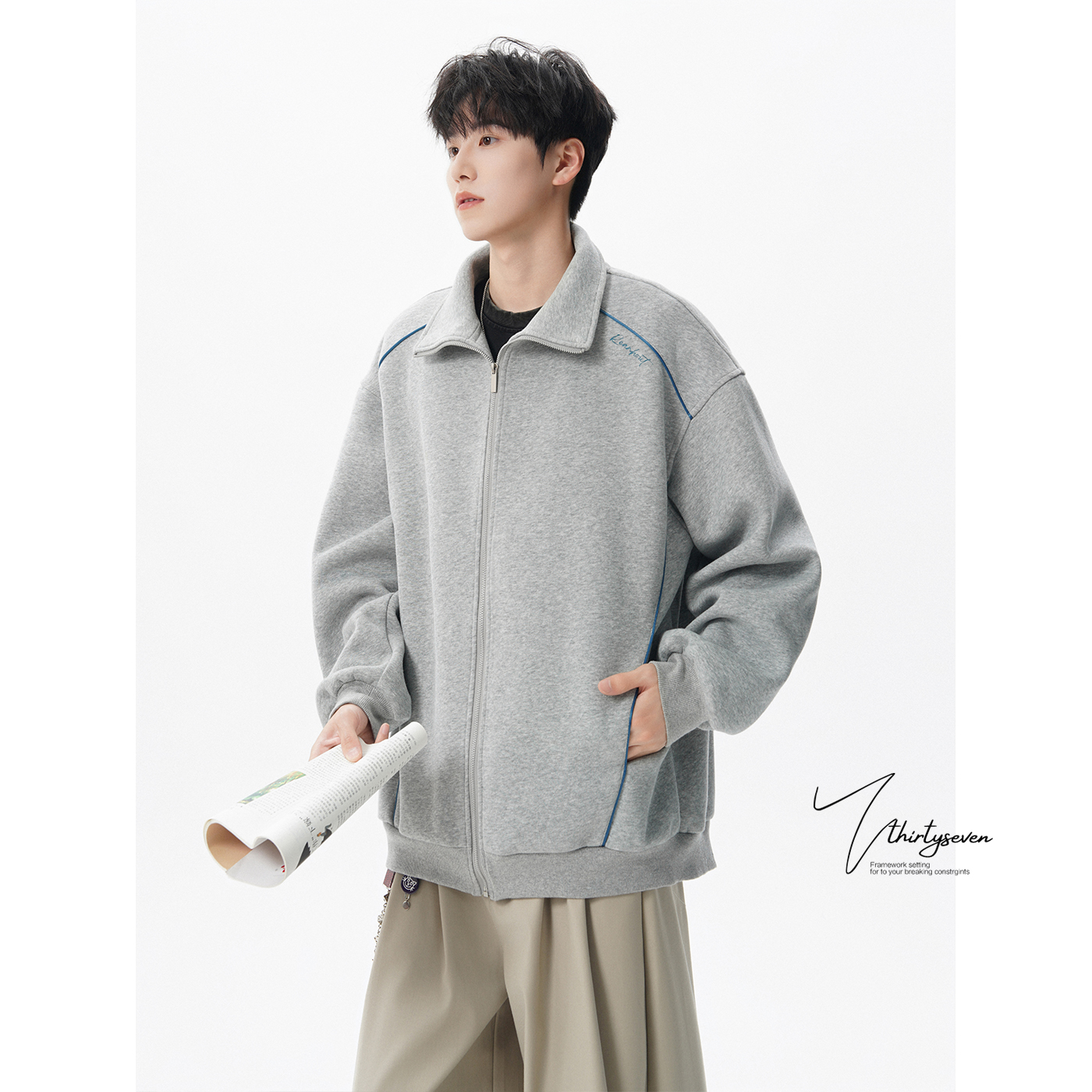 加绒加厚上衣 外套女初春秋季 灰色连帽卫衣女2025新款 宽松拉链开衫