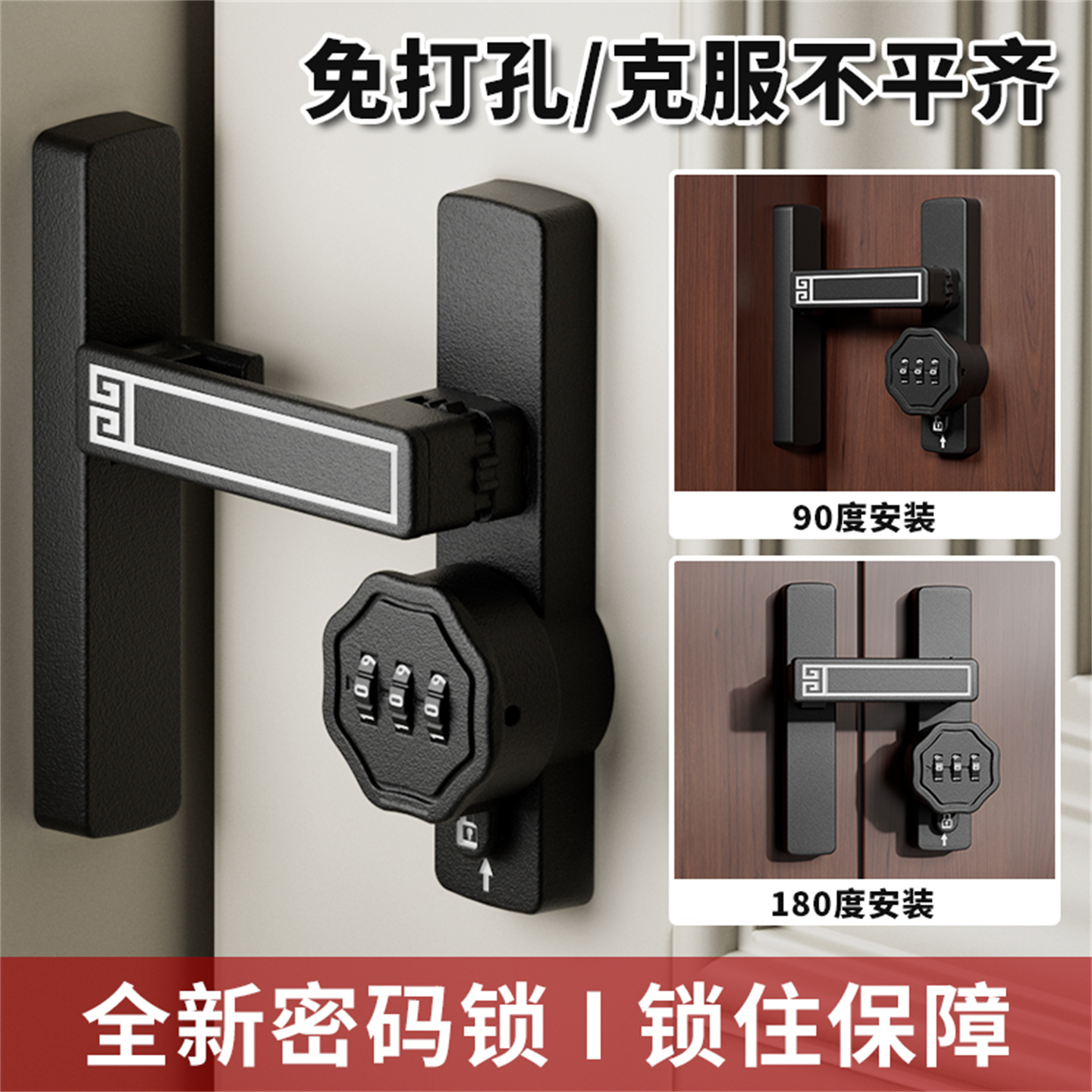 平移门密码 锁扣门窗免打孔可调节搭扣90度直角移门锁扣推拉门插销