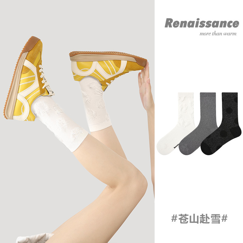 2025秋冬季 无骨精梳棉黑白波点百搭双针中筒女袜 袜子女ins潮秋季