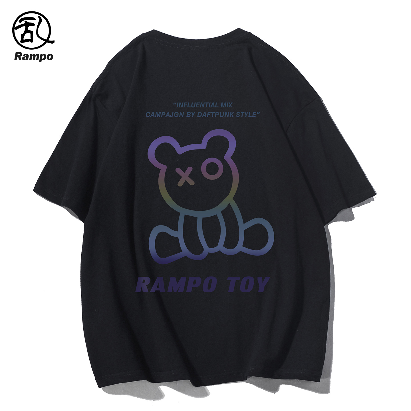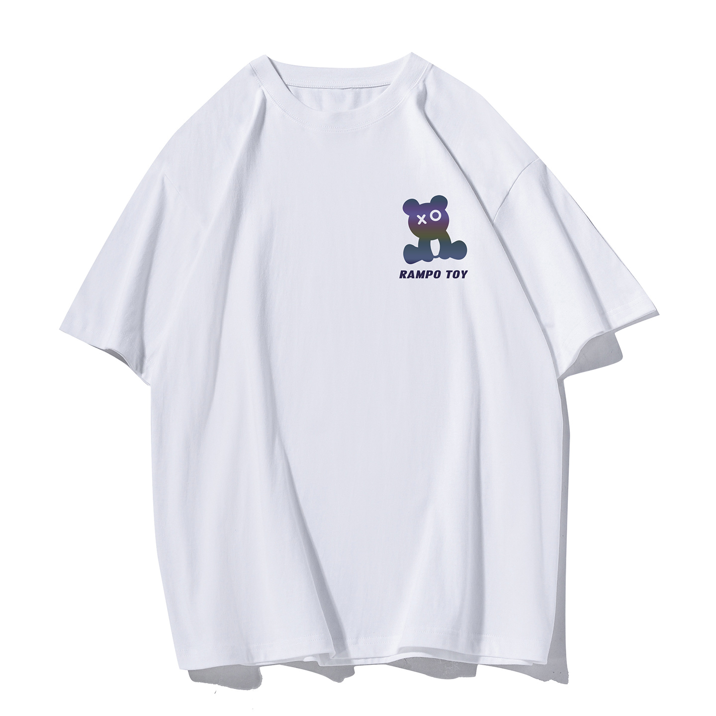 宽松圆领上衣 T恤男女款 国潮个性 ins炫彩反光小熊印花220G纯棉短袖