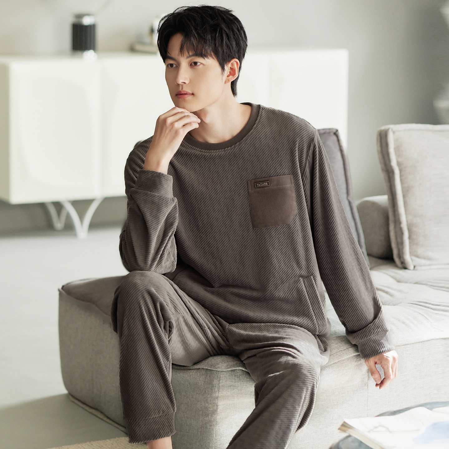 珊瑚绒套装 男士 家居服春秋加厚保暖大码 海岛绒薄绒男式 睡衣秋冬季