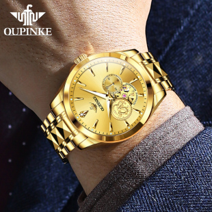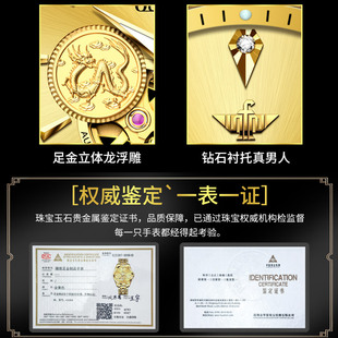 防水 手表男机械表全自动真金浮雕全金色高档镂空正品 2025新款 男士