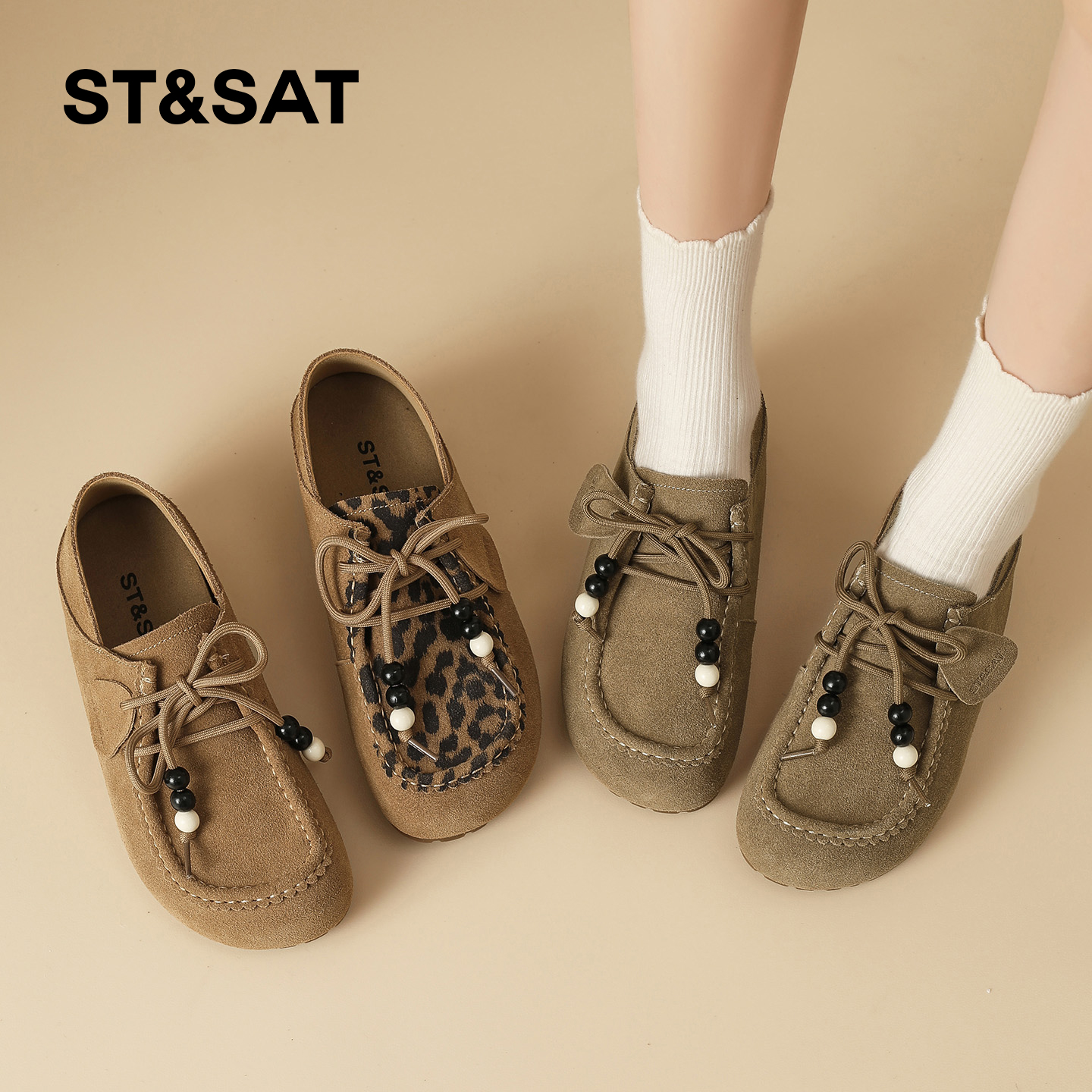女鞋 女款 豆豆鞋 女2025秋季 子平底真皮单鞋 新款 鞋 星期六乐福鞋 爆款
