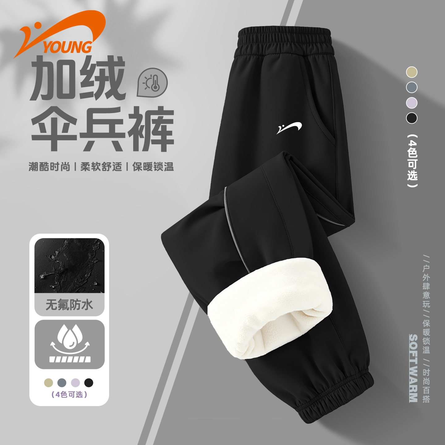 女孩时髦伞兵裤 贵人鸟女童紫色加绒裤 保暖长裤 儿童冬季 子2025新款