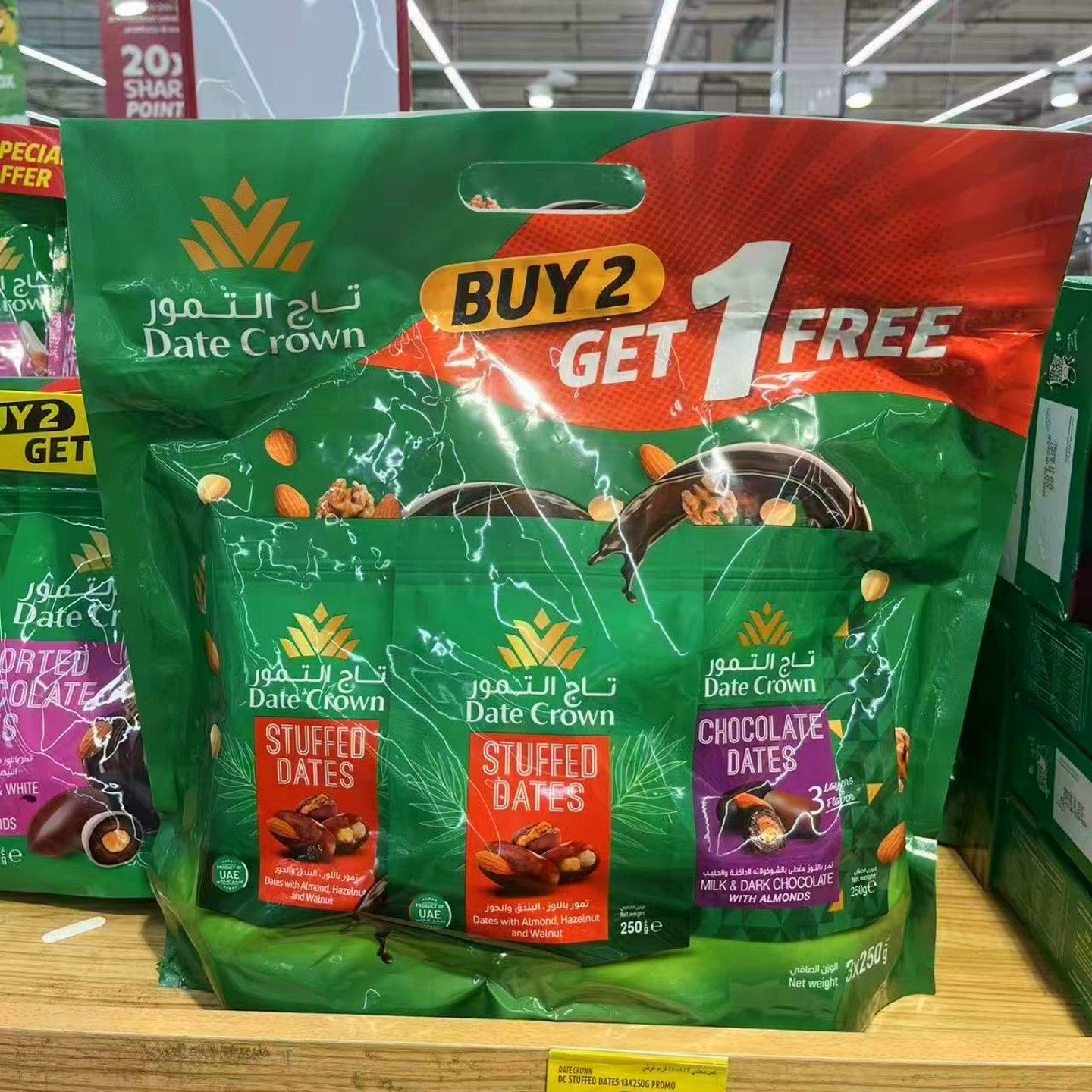 100G独立包装 DateCrown牛奶巧克力椰枣夹心杏仁 迪拜代购 现货