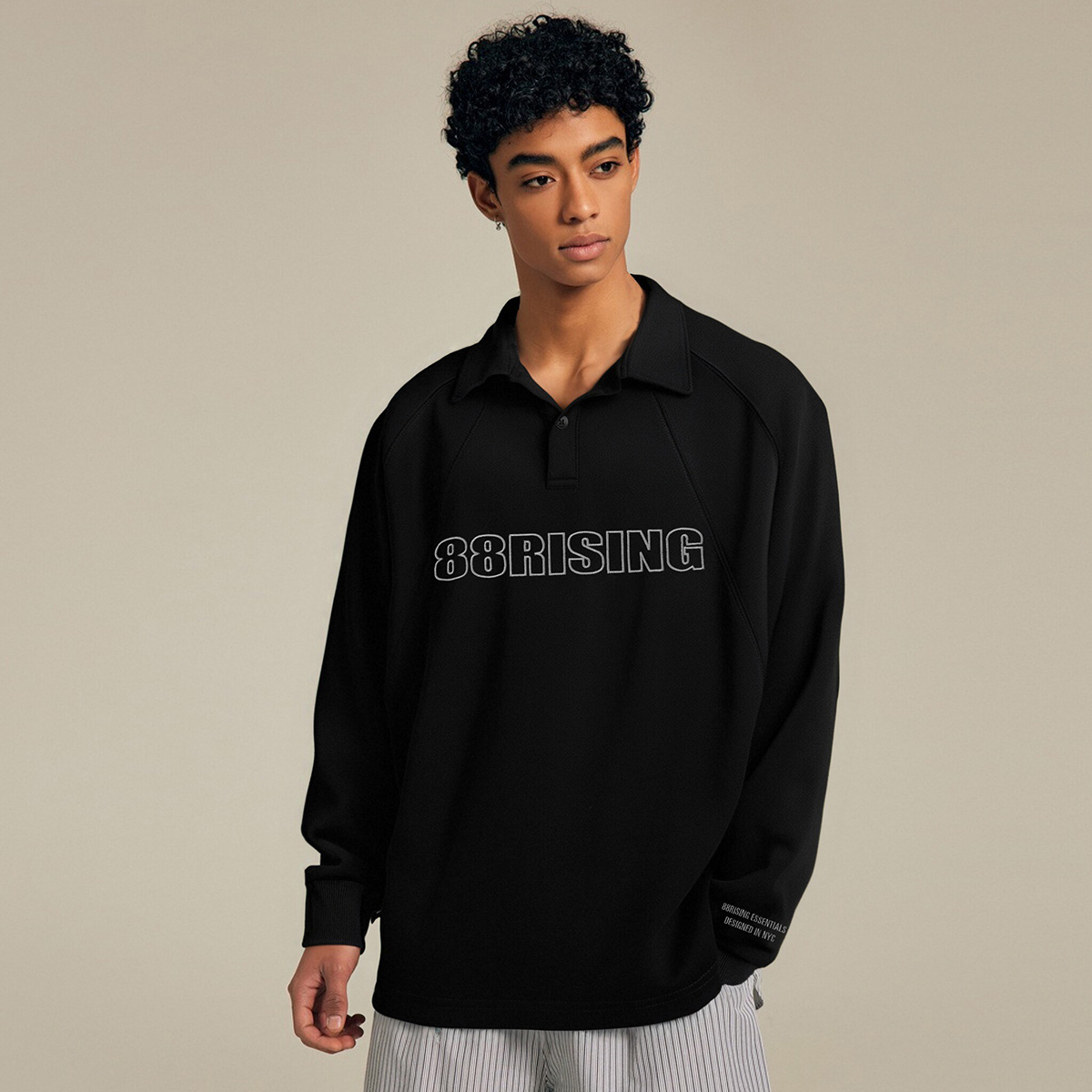 88rising美式 字母LOGO刺绣宽松休闲套头翻领POLO套头卫衣男女同款