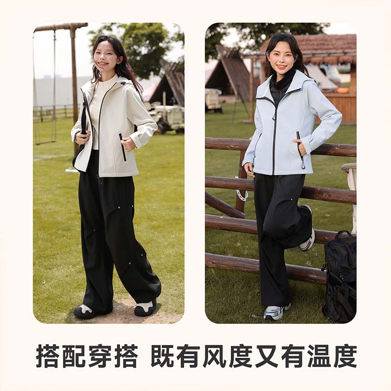 班尼路三防外套女夹克冬季 加绒防风户外登山服保暖上衣M 2025新款