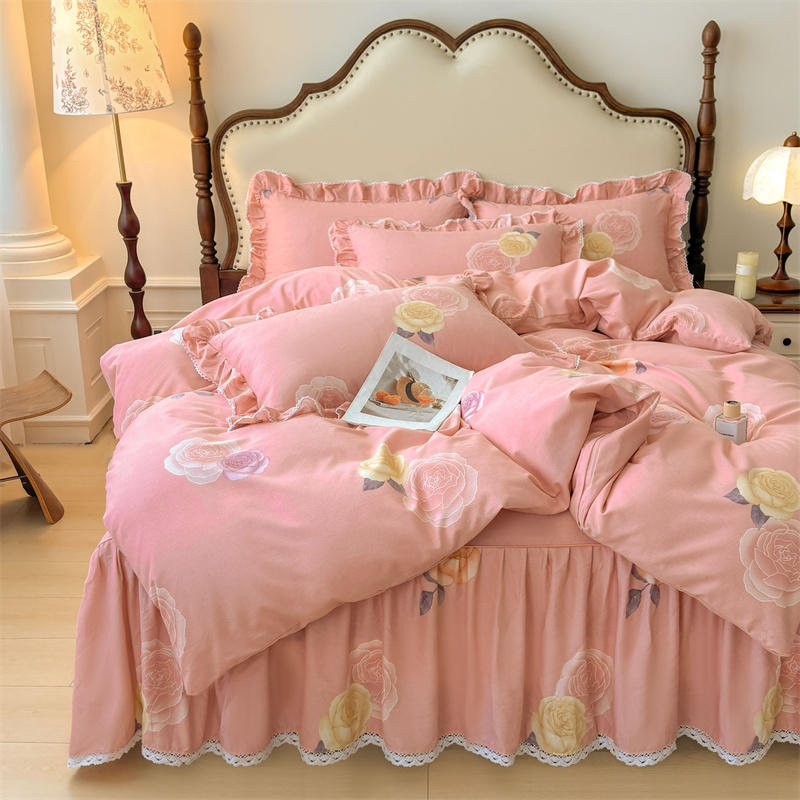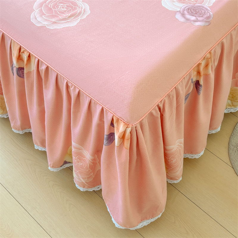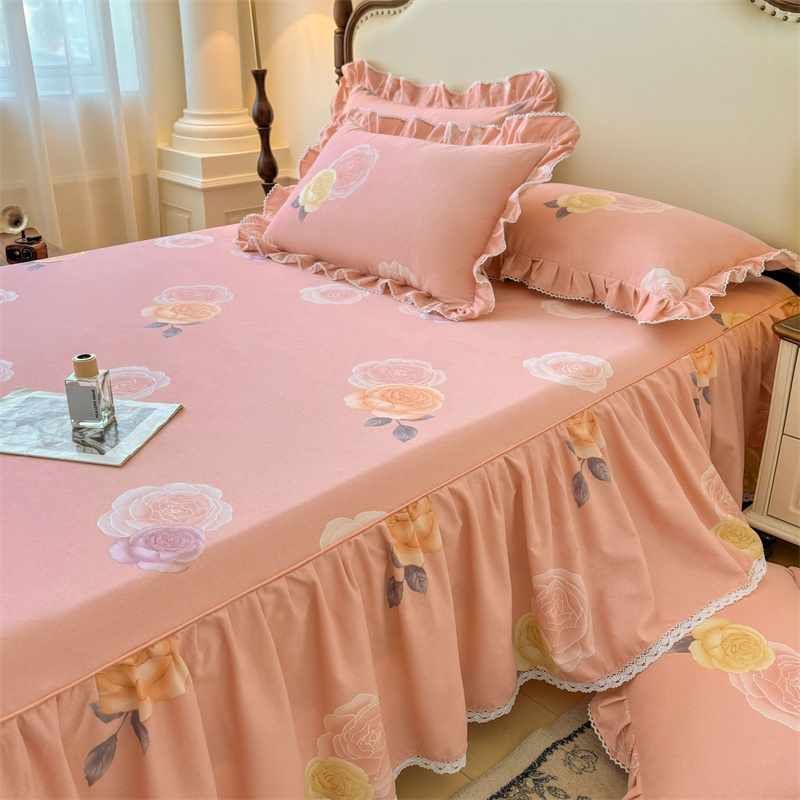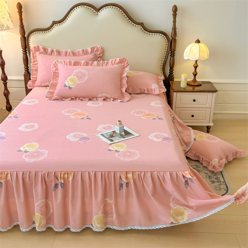 全棉磨毛床裙纯棉花边床单床套防滑带裙边遮丑床裙罩被套四件套