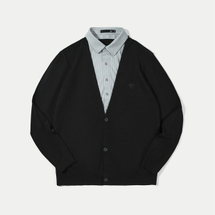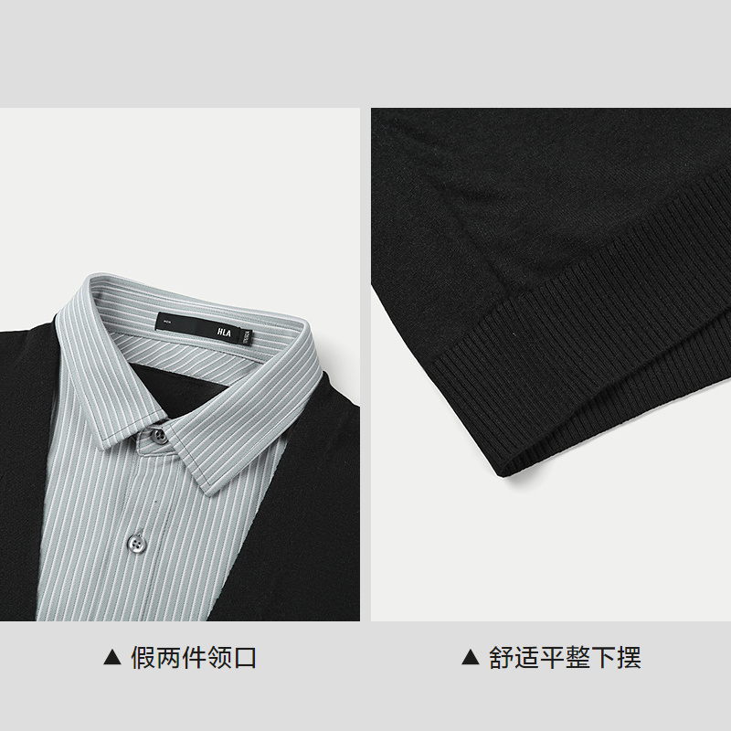T恤针织衫 红豆假两件毛衫 领长袖 衬衫 男毛衣 爸爸保暖假两件打底衫