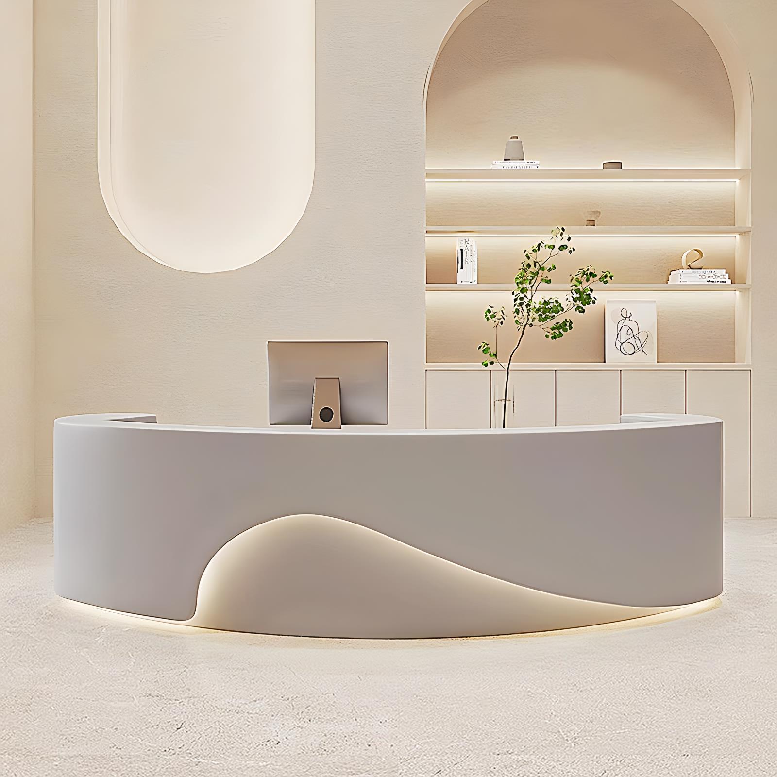 弧形美容院收银台服装 店前台公司接待台吧台烤漆简约现代定制柜台