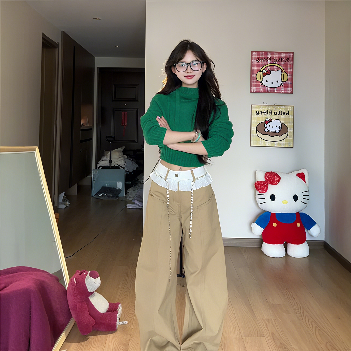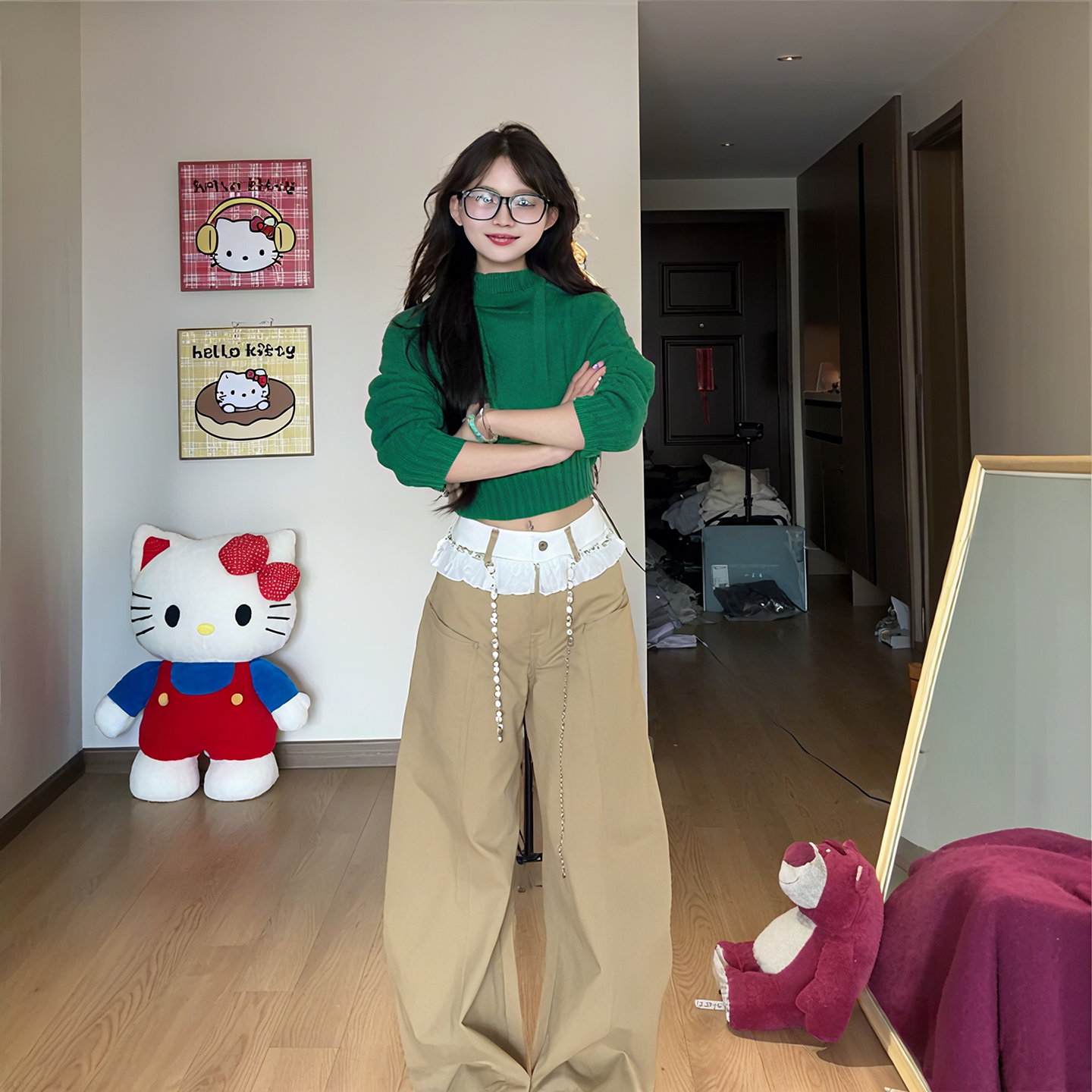 绣花内搭休闲短款 紫涵撞色花边翻领修身 新款 毛衣女冬季 上衣 针织衫