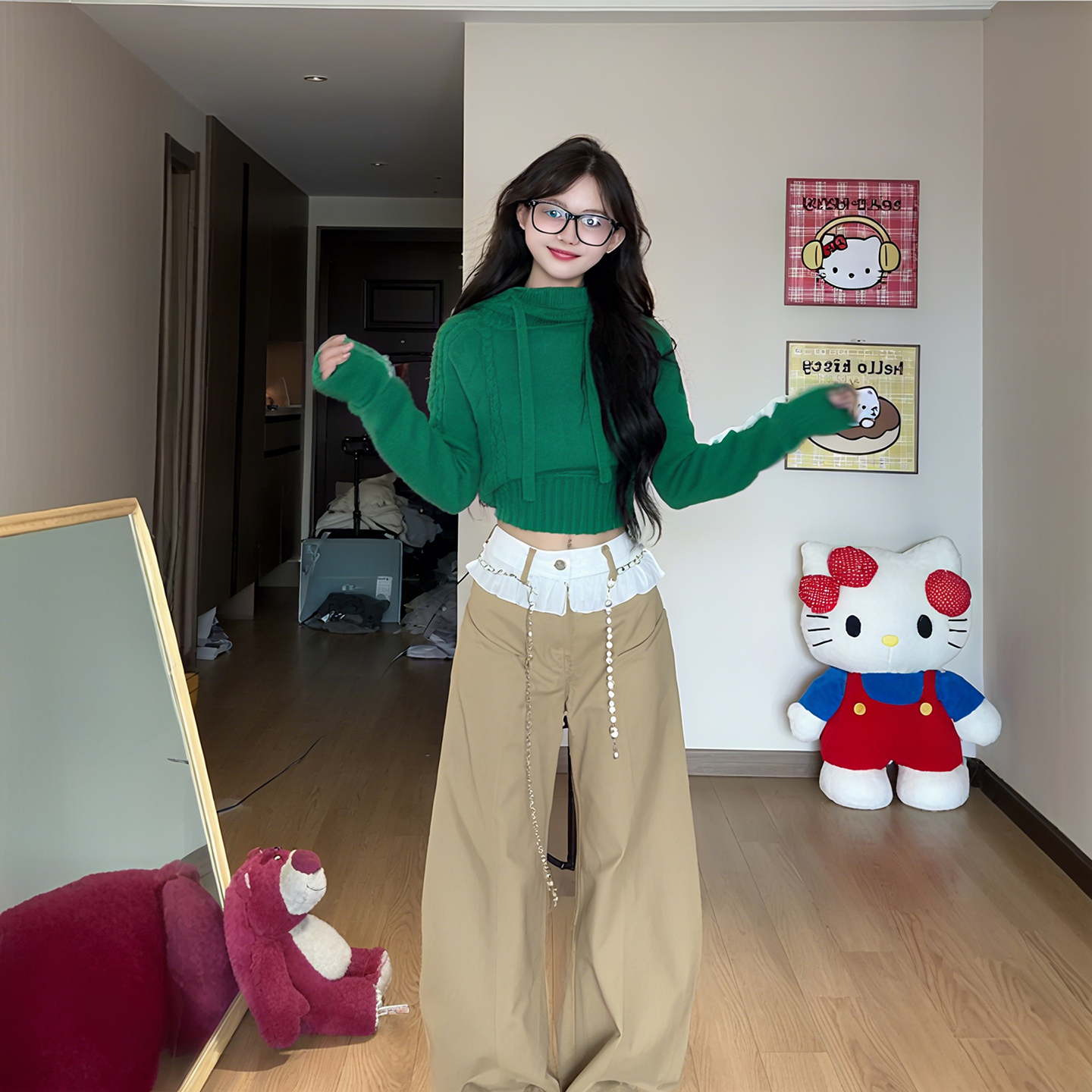 女吊带针织衫 阔色藏蓝连帽罩衫 新款 25秋季 短上衣 毛衣背心两件套装