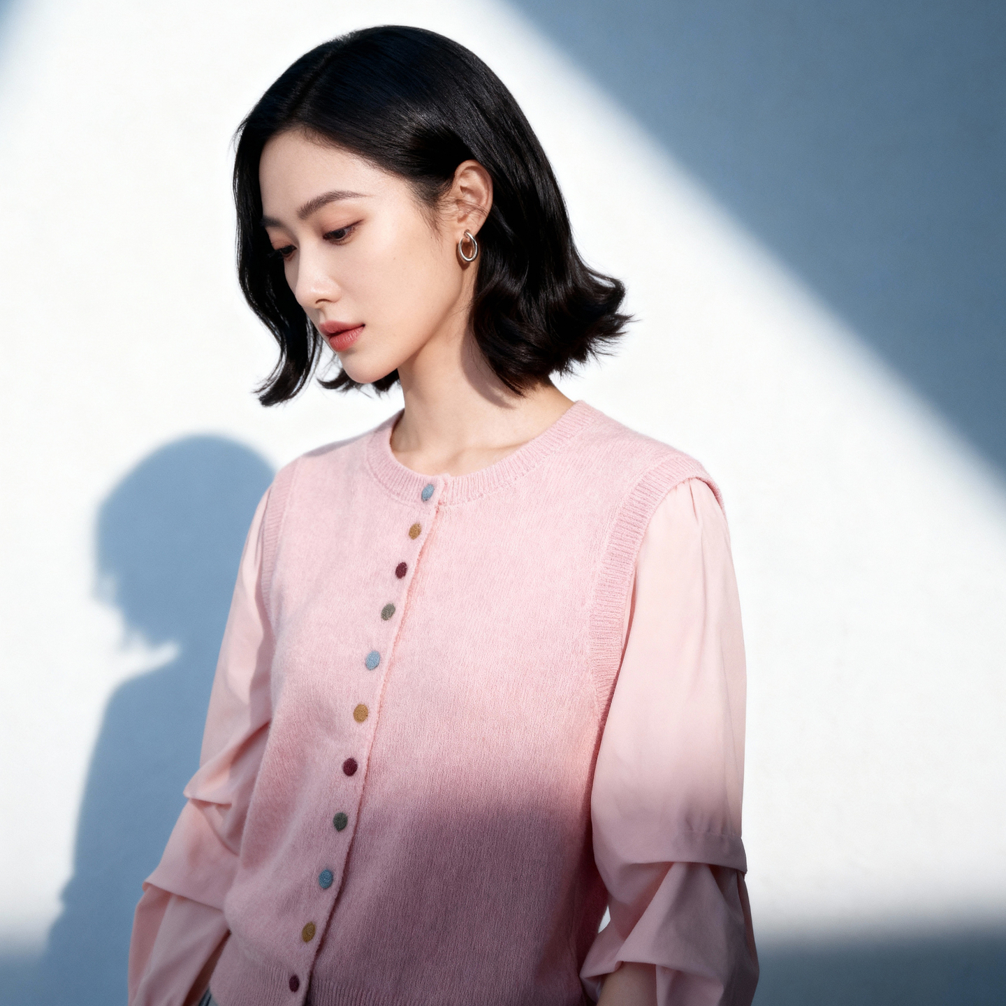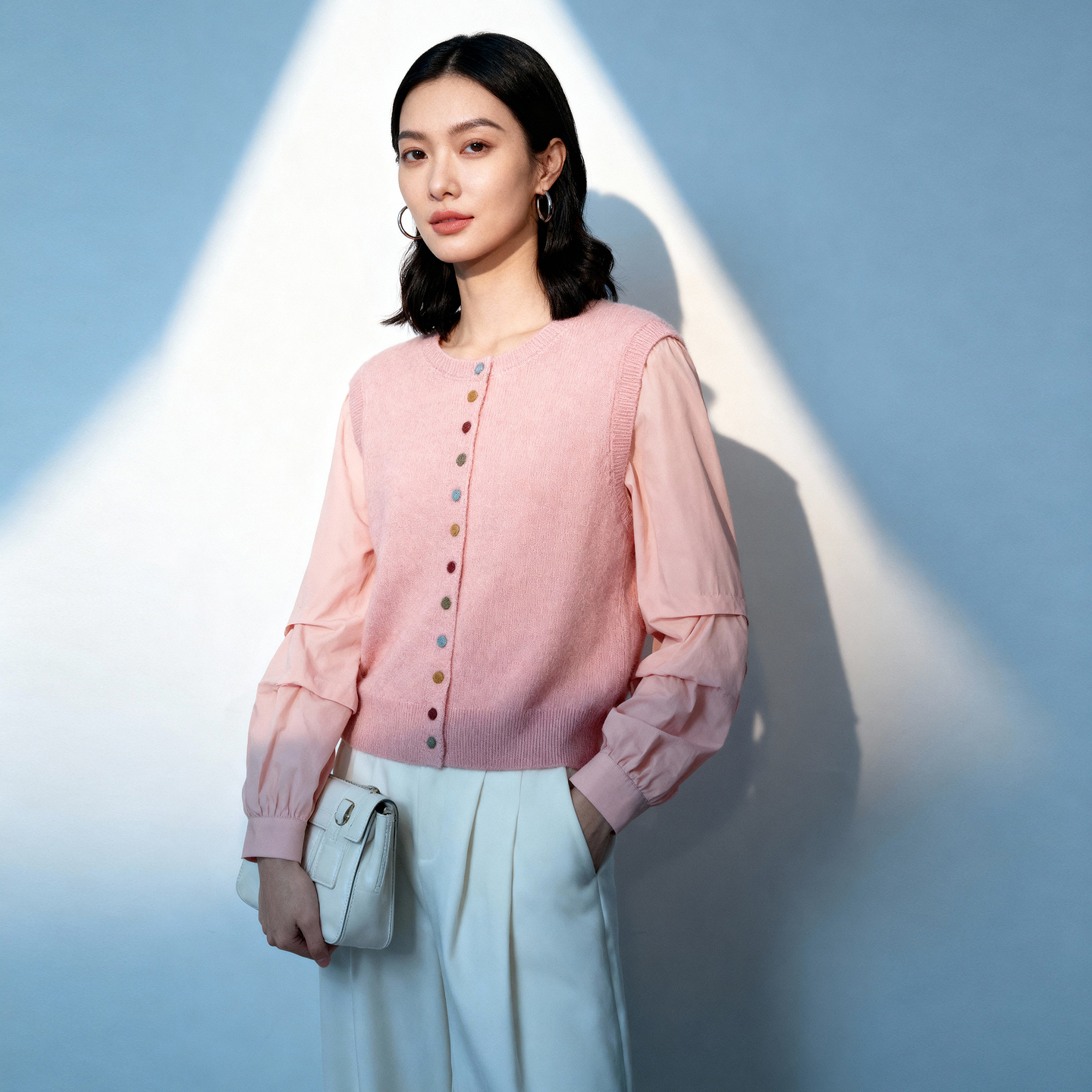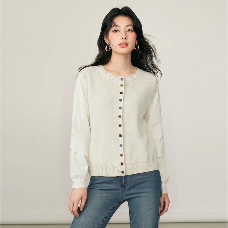 秋冬圆领羊绒衫 外套设计感小众假两件撞色毛衣 女100纯山羊绒开衫