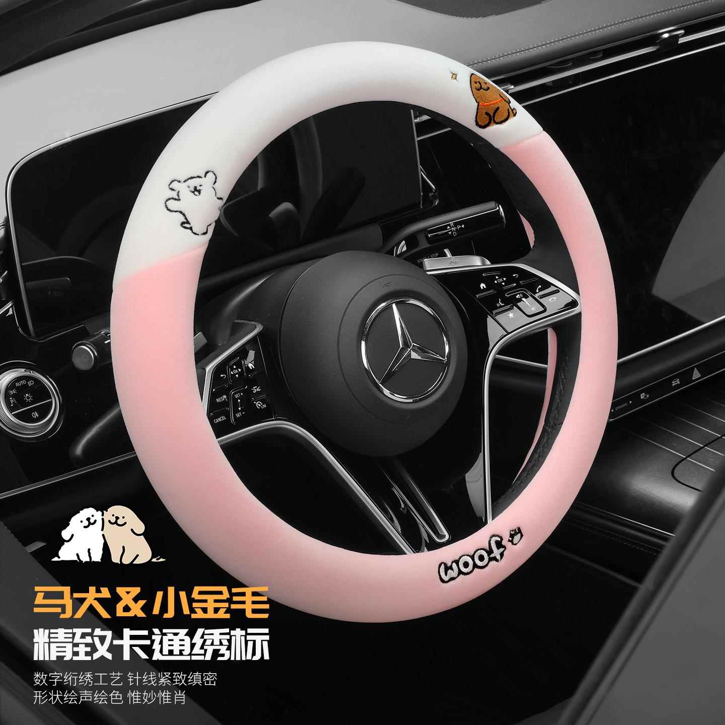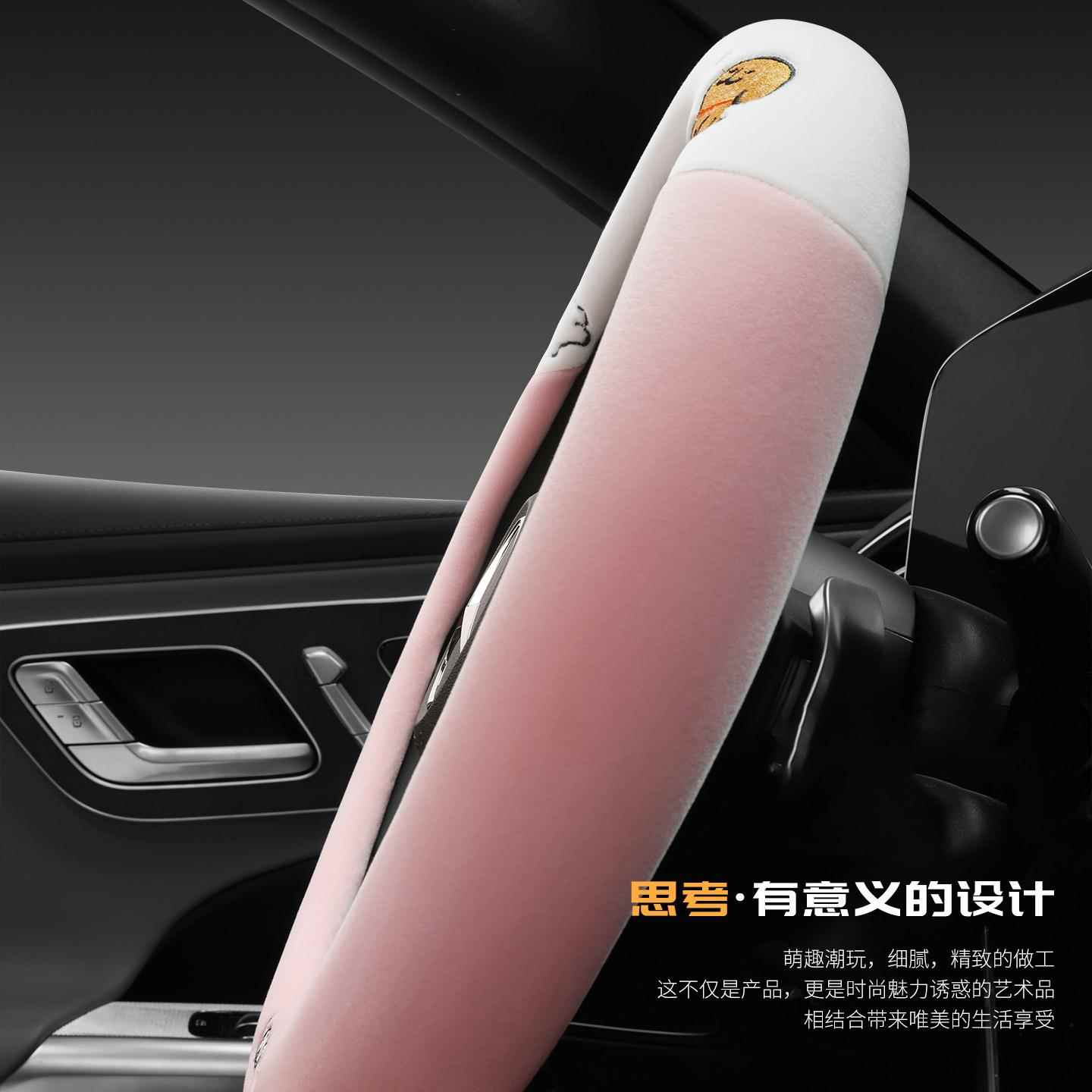 新款 通用女防滑高级吸汗透气四轮车通用型 猫耳朵汽车方向盘套四季