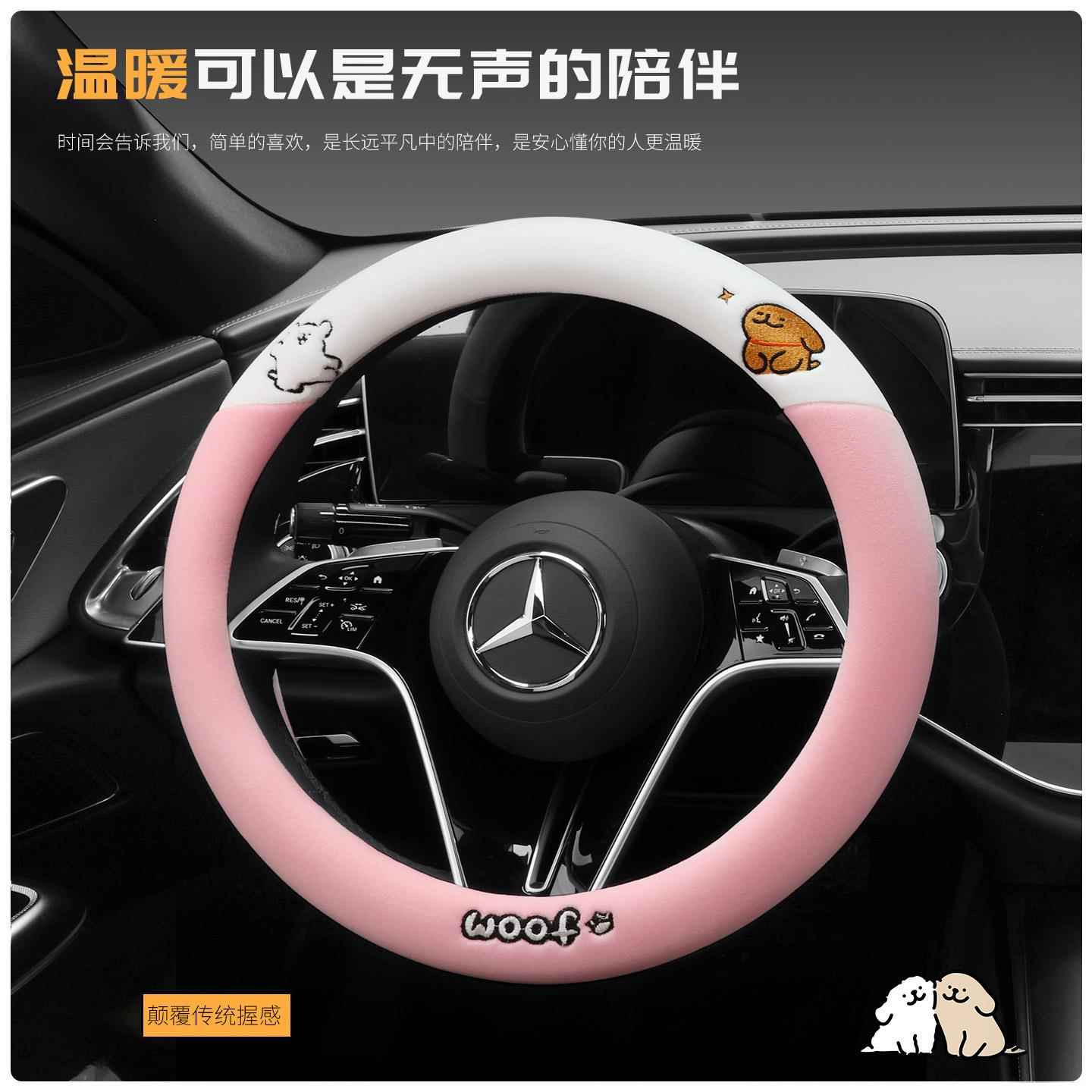 女可爱大众翻毛皮汽车把套 通用保护套25新款 方向盘套冬季 毛绒四季