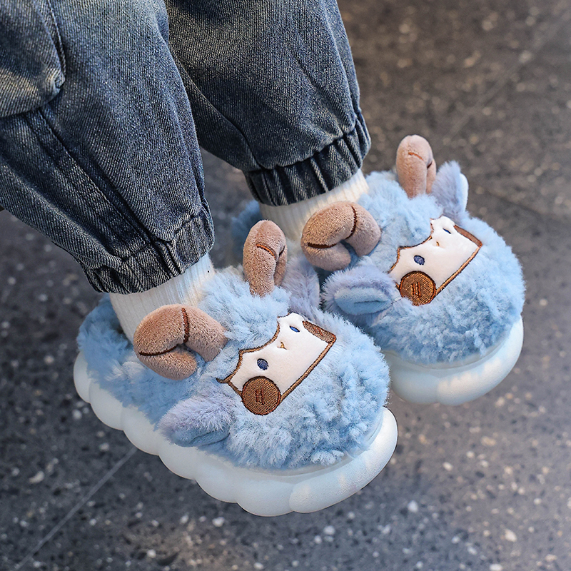 保暖加绒包跟居家可爱男女童中小童宝宝毛 儿童棉拖鞋 义乌仓 冬季